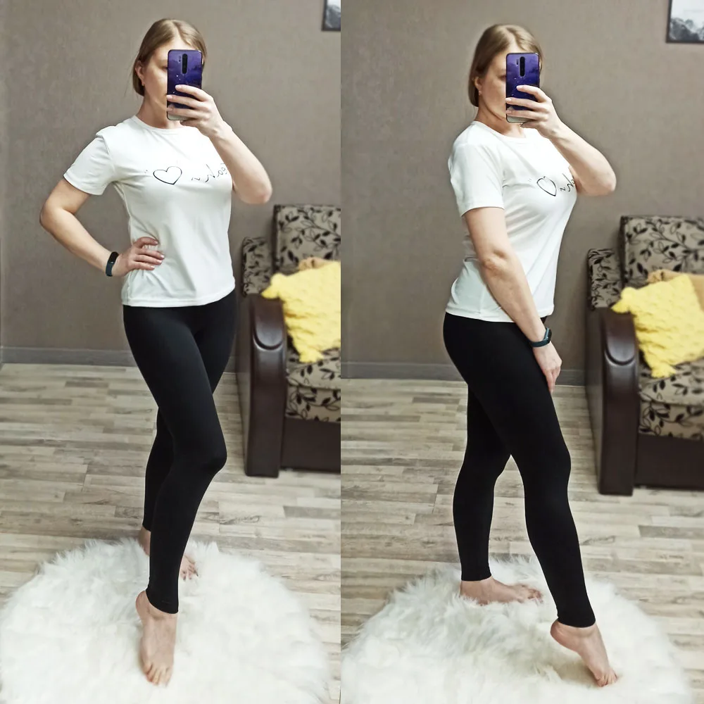 Классные и качественные леггинсы с высоким поясом на крючках. Можно регулировать и утягивать талию. Материал плотный и качественный. Внутри с утеплителем. Поэтому хорошо подойдут для занятий спортом на улице в прохладное время года. На рост 172 см 86-70-96 Размер L Цвет black thick Леггинсы пришли в индивидуальном пакете. Мне размер подошел отлично. Длина конечно коротковата. Подойдет девочкам с ростом до 168см примерно так. Мне не хватило как раз 5-7см. Материал эластичный и приятный. Хороший эффект утяжки в талии и бедрах. Смотрятся классно, но слегка увеличивают объёмы. Магазин классный и могу 100% рекомендовать. Продавец отвечает на все вопросы. Доставка быстрая 1,5 недели через пятерочку