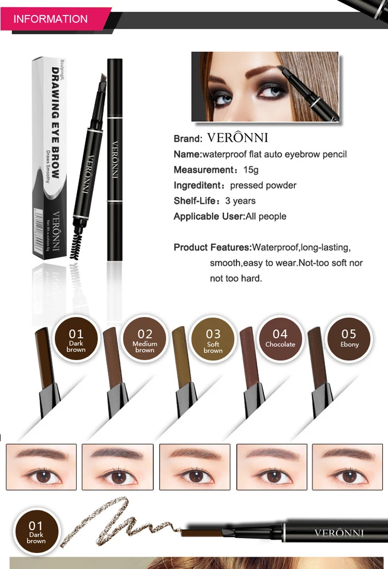 Карандаш для бровей натуральный, Водостойкий карандаш для бровей, к...