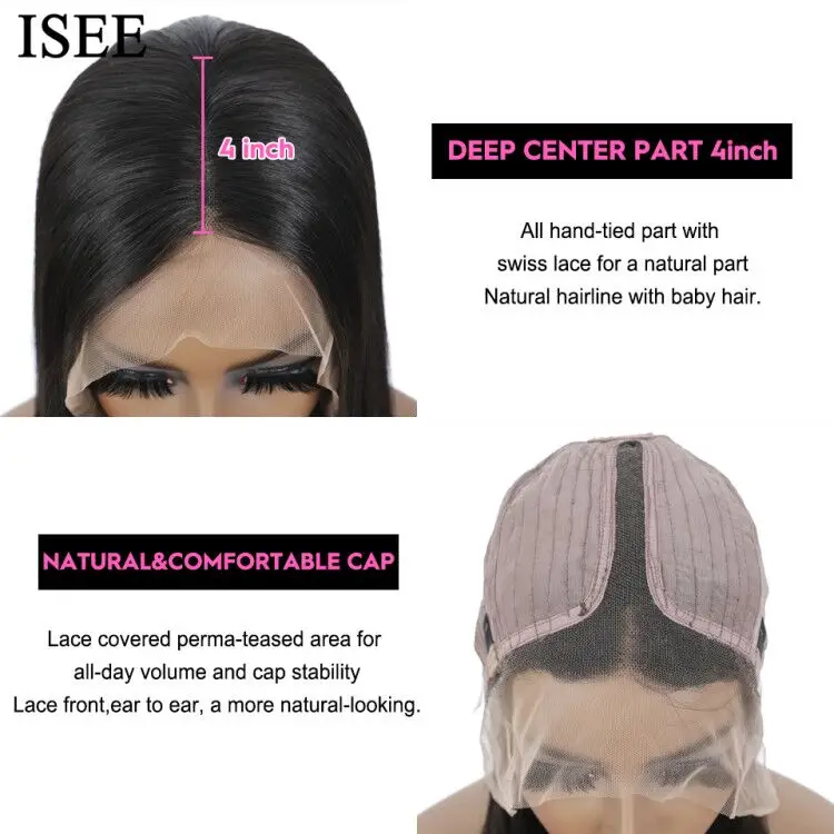 Парики ISEE из натуральных волос с глубокой волной, 13 х4х1, T-обра...