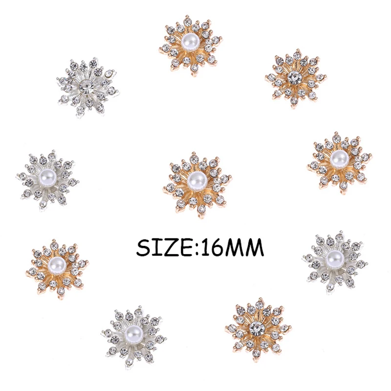 10 шт. 16 мм Стразы Снежинка кабошон металлические винтажные кнопки для одежды с плоской задней обшивкой жемчуг DIY Ремесло Швейные аксессуары