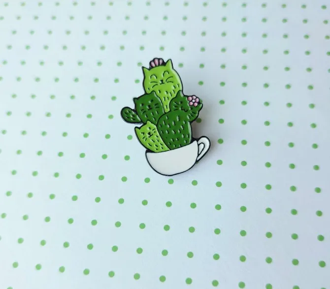 Эмалированная заколка с изображением кактуса, кошки, котенка, лица,...