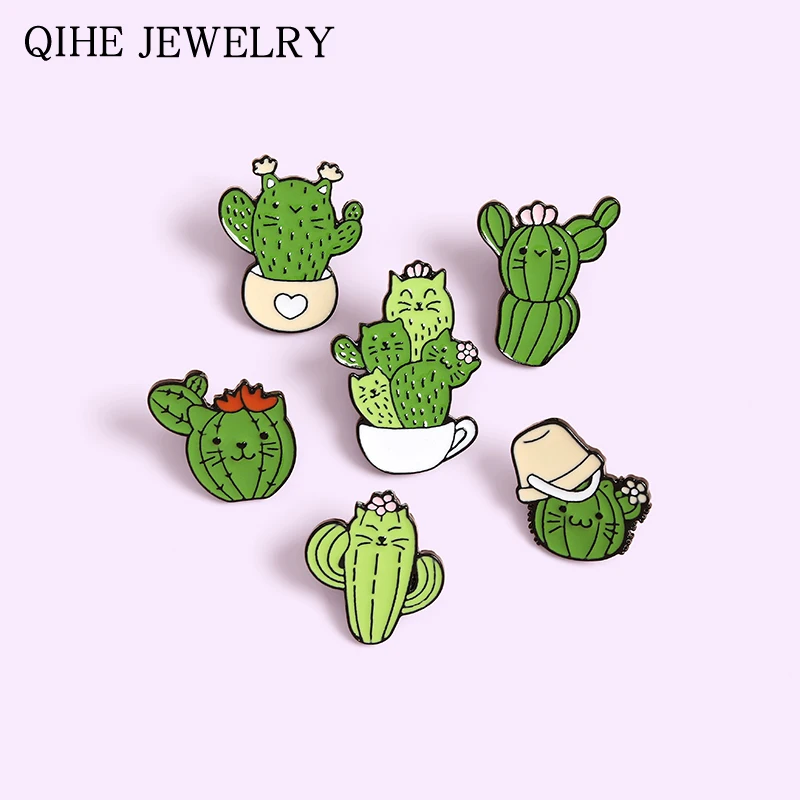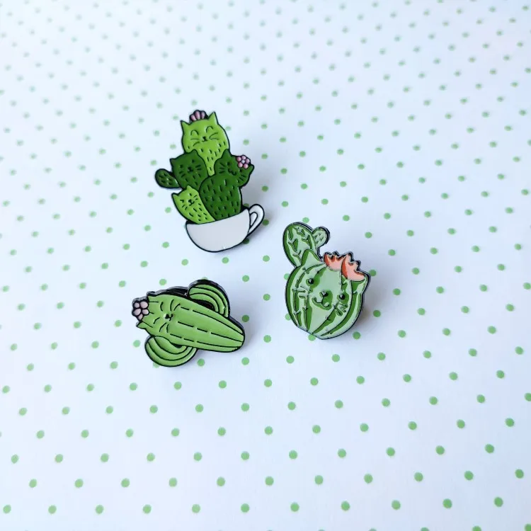 Эмалированные булавки с изображением милого кактуса кота и зеленых ...