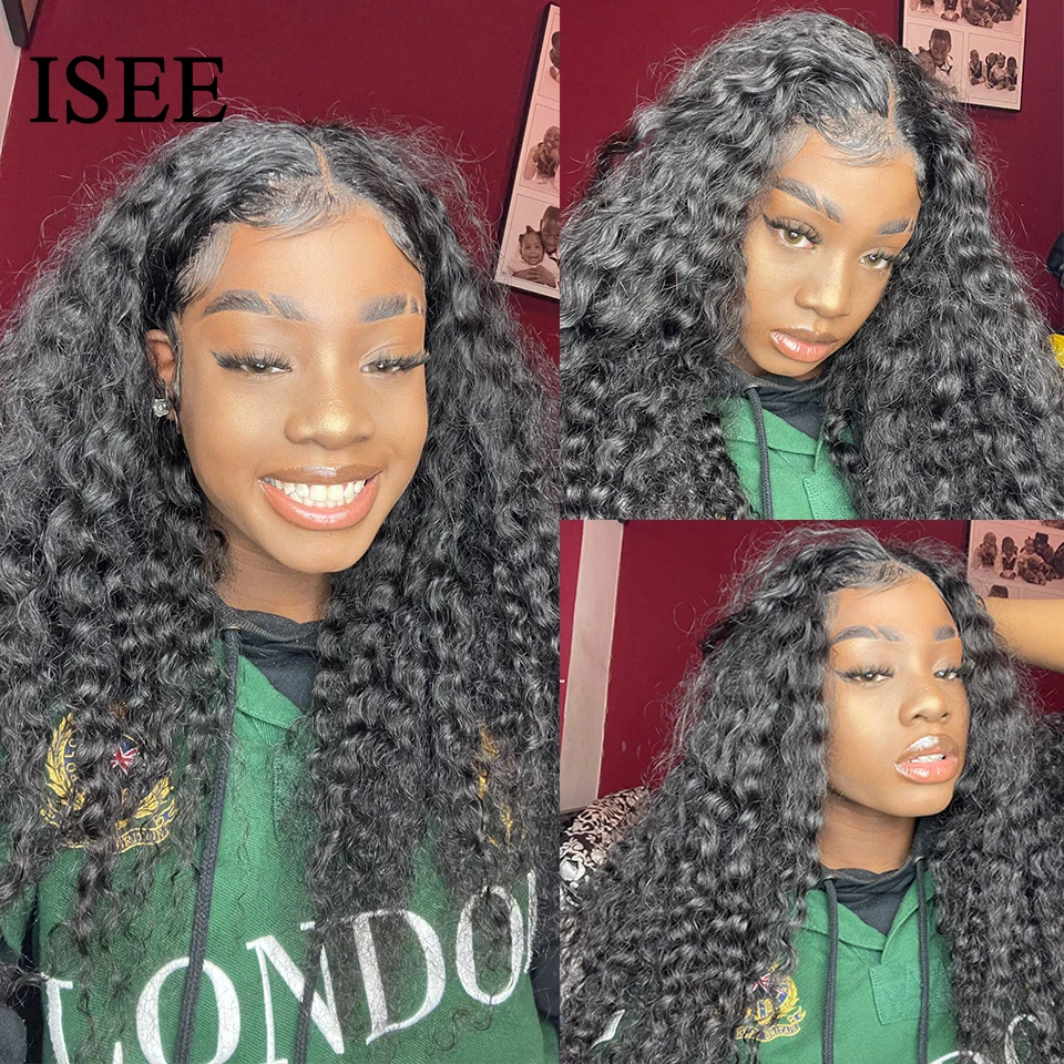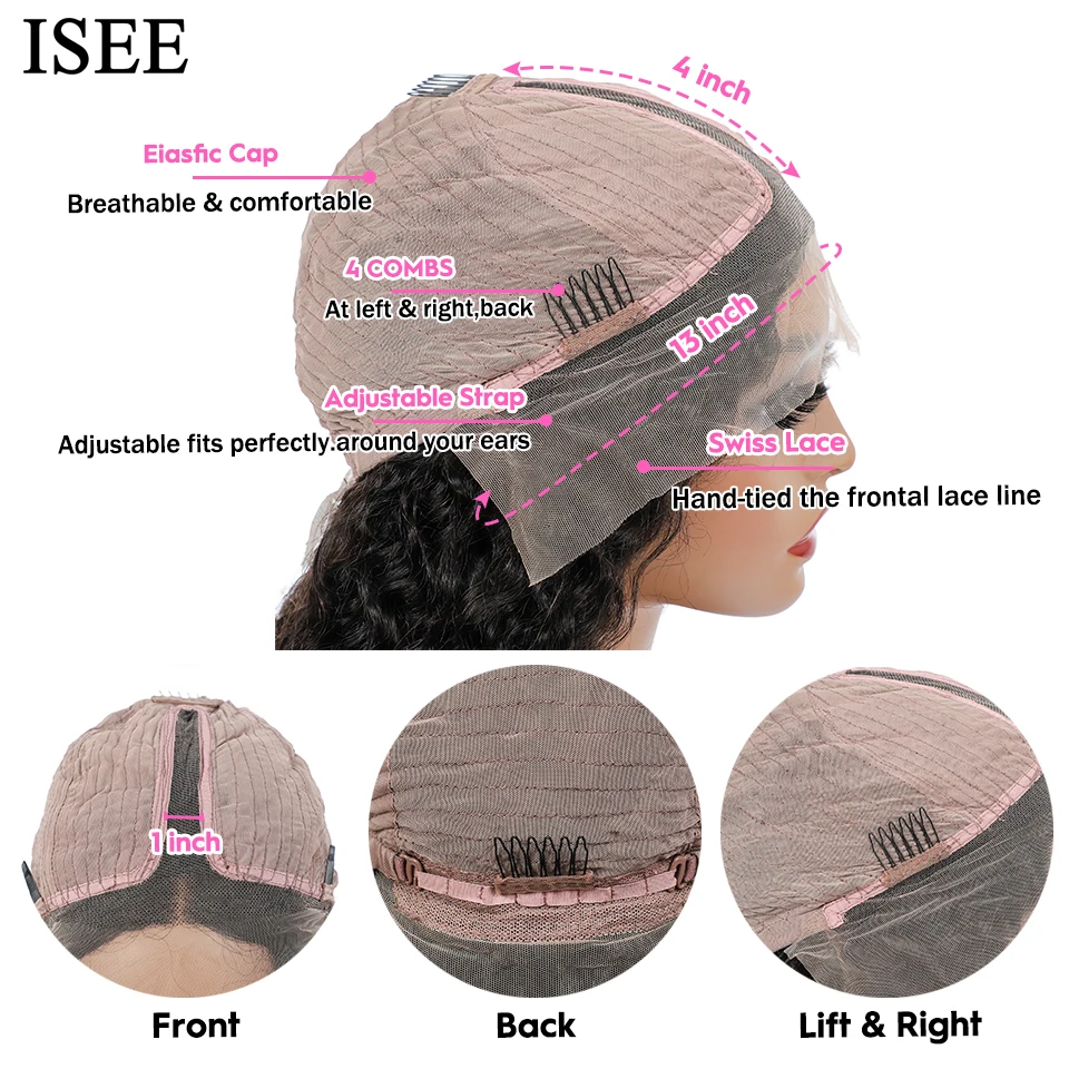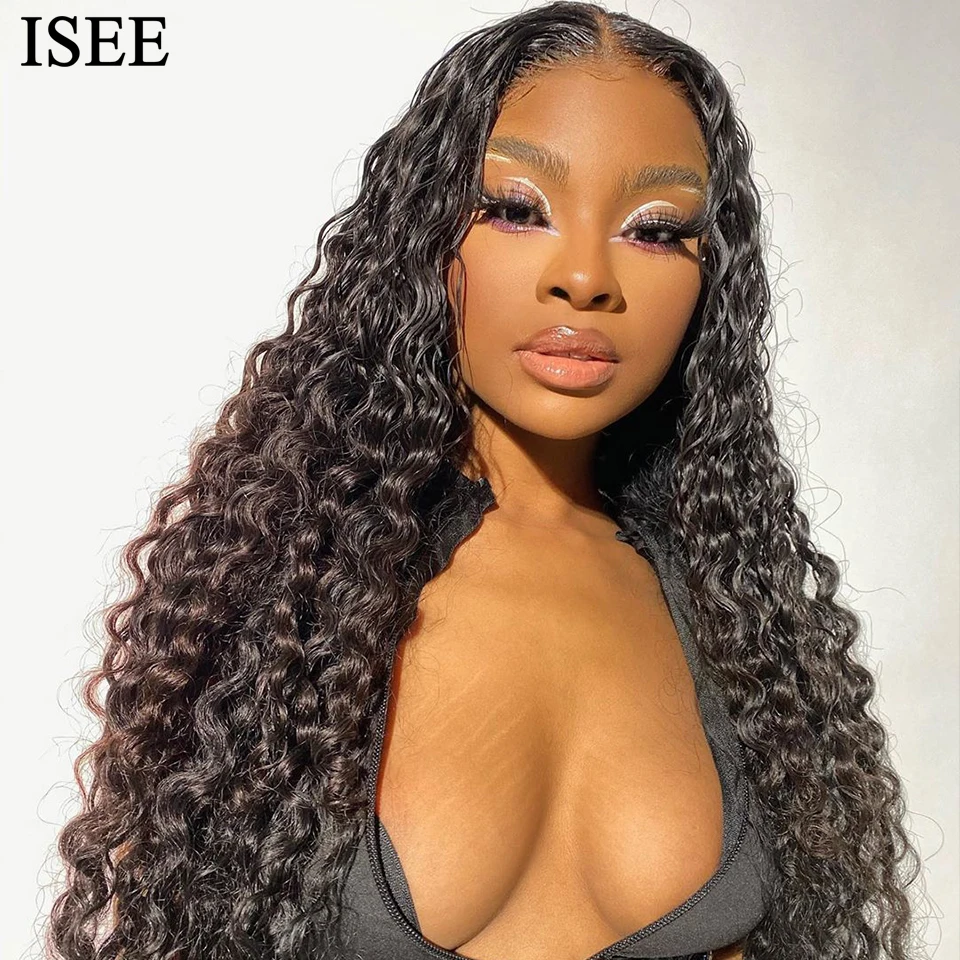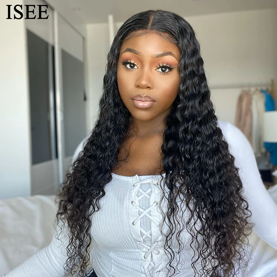 Парики ISEE из натуральных волос с глубокой волной, 13 х4х1, T-образные, бразильские