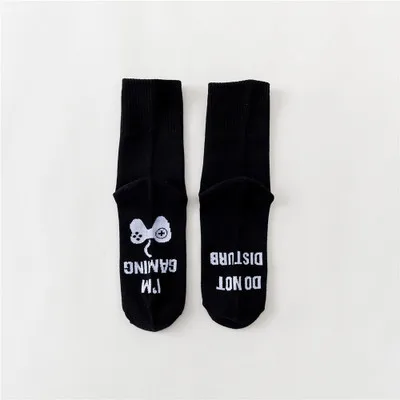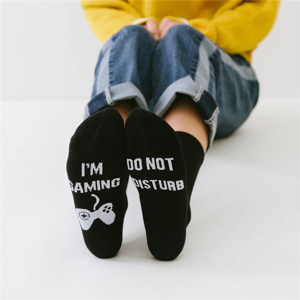 Носки мужские до щиколотки, модные круглые, с надписью, унисекс, для домашних игр, черные белые, Осень-зима