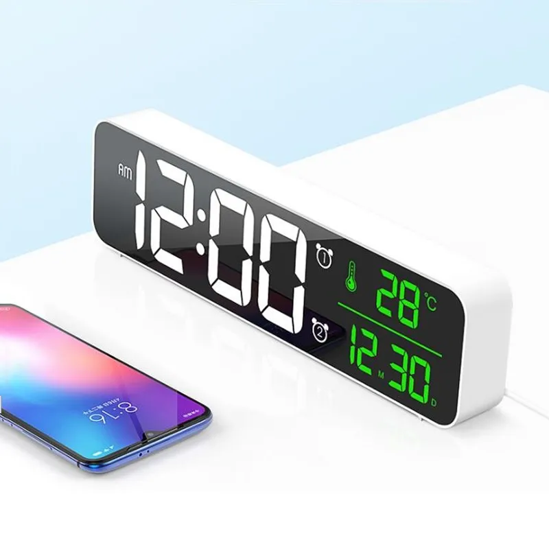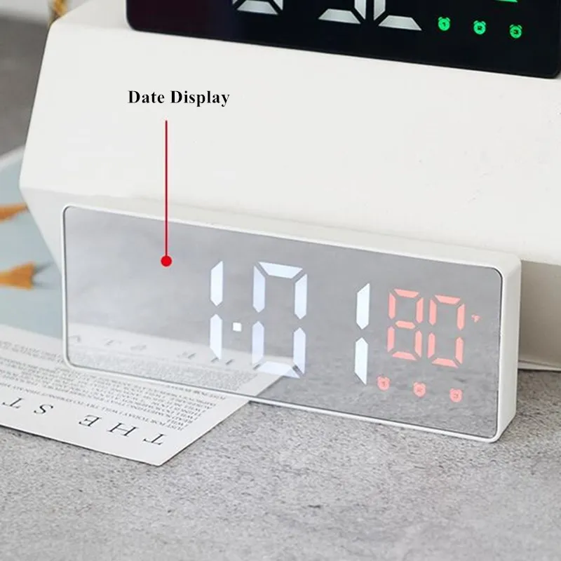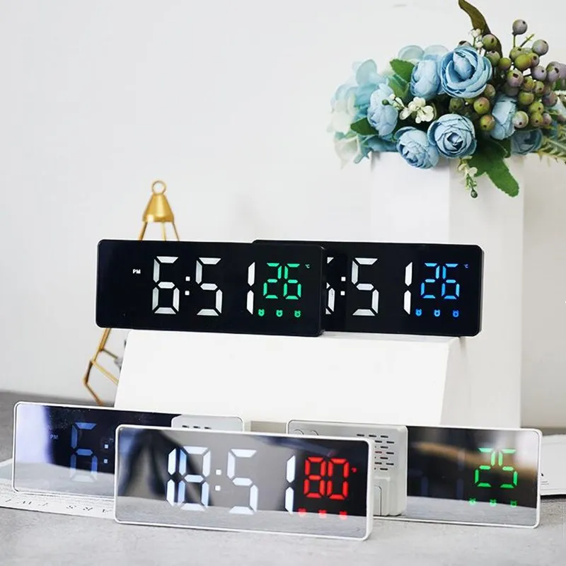 Светодиодный цифровой будильник с функцией повтора температуры и отображения даты USB Настольный ленточный зеркальный светодиодный часы для украшения гостиной