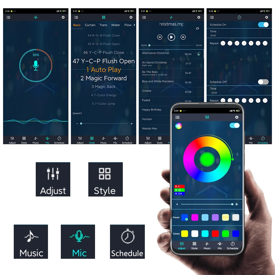 5-метровая Светодиодная лента, соответствующая продукту и удивление иметь мобильное приложение в дополнение к пульту дистанционного управления. Очень интересная цена!