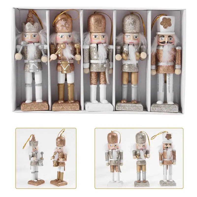 1 Набор = 5 шт. Рождественская деревянная кукла Декор Ручной Работы Рождественский Щелкунчик кукла кулон креативный сверкающий Порошок кукла орнамент
