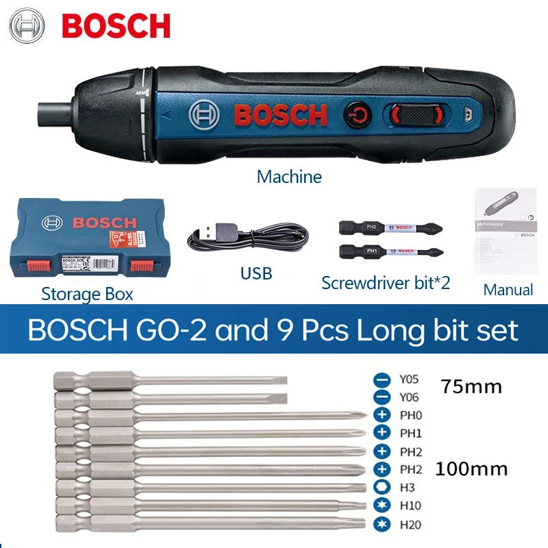 Электрическая отвертка Bosch Go2, перезаряжаемая Автоматическая отвертка, ручная дрель Bosch Go-2, многофункциональный Электрический инструмент