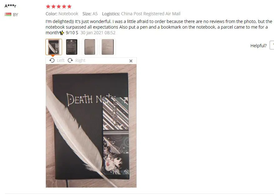 Я в восторге)) Всё просто замечательно. Я немного побаивалась заказывать из за того что совсем нету отзывов с фото,но тетрадь превзошла все ожидания Также положили к тетради перо и закладку, ко мне пришла посылка за месяц ✨ 9/10