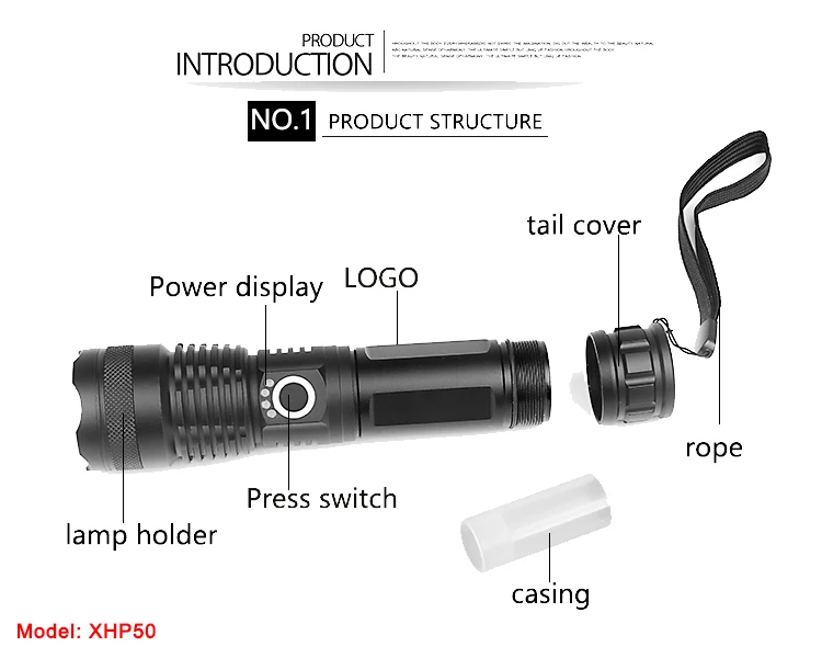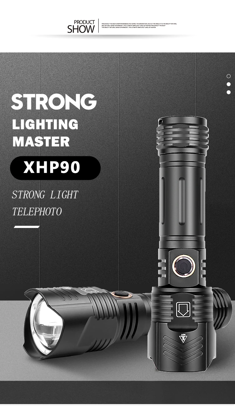Мощный светодиодный фонарик использует светильник XHP50 светодиодный для максимальной выходной мощности до 1000 люменов; Выпуклая линза.