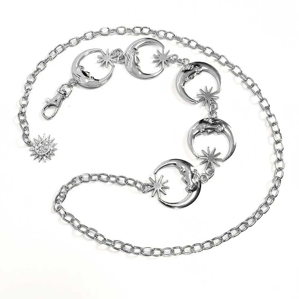 Harajuku в стиле панк Moon металлический Ремни Для женщин Винтаж Высокая Талия средства ухода за кожей цепи талии Ремни Готический солнце и луна серебряная подвеска Ремни