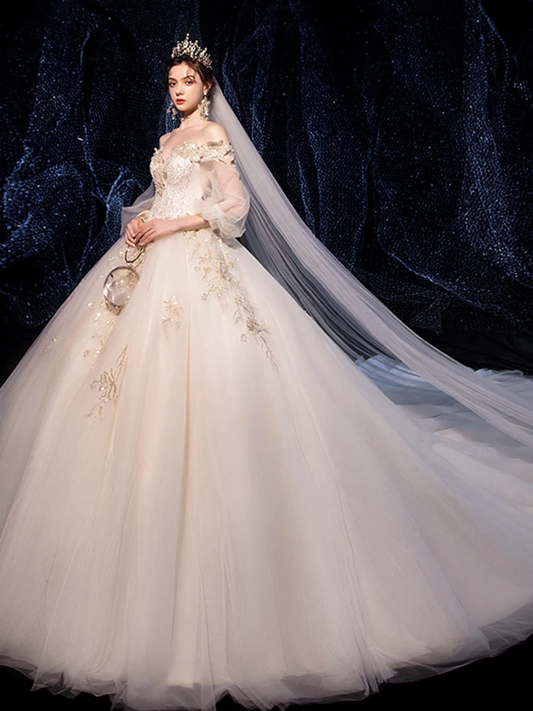 Женское свадебное платье It's yiiya, белое кружевное платье с открытыми плечами и бисером на лето 2019