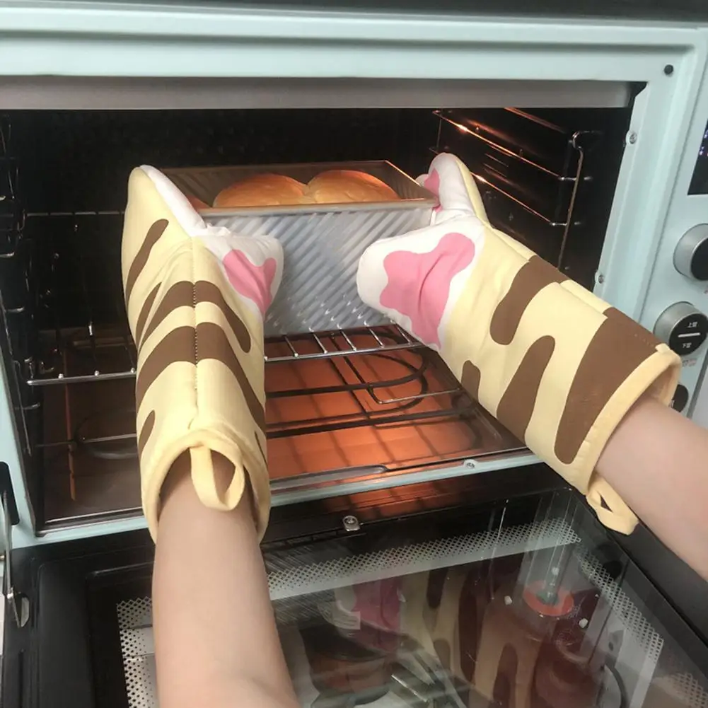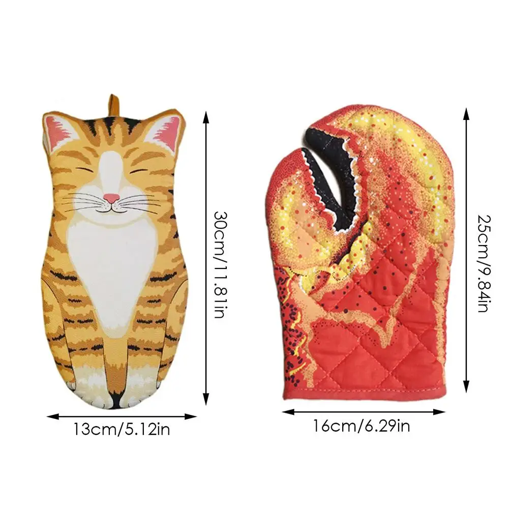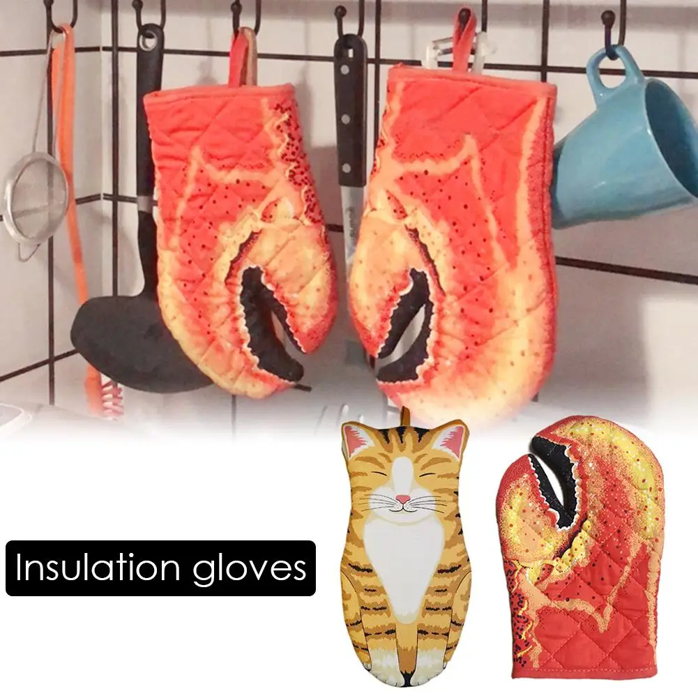 Варежка с 3D рисунком животных, теплоизоляционная перчатка для духовки, перчатка с антиожогом из хлопка, идеально подходит для микроволновой печи и выпечки