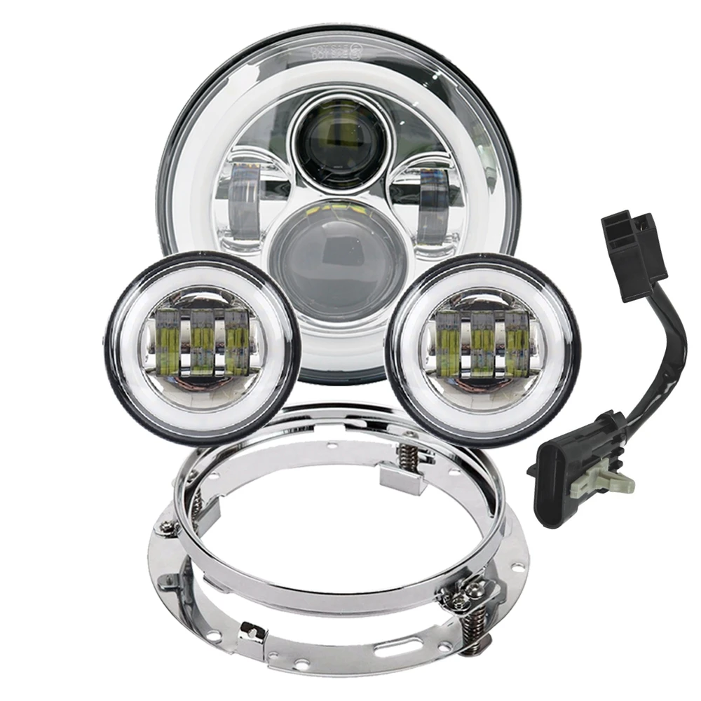 Мотоциклетная 7-дюймовая светодиодная фара для мотоцикла Harley с 4-12 "4,5" светодиодными фарами ближнего света, противотуманными фарами и монтажным кольцом с кронштейном 7"