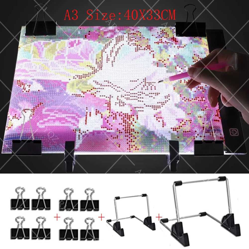 A4 A4 A5 светодиодный светильник Pad для алмазной живописи, USB питание светильник, набор для доски, регулируемая яркость со съемной подставкой и зажимами