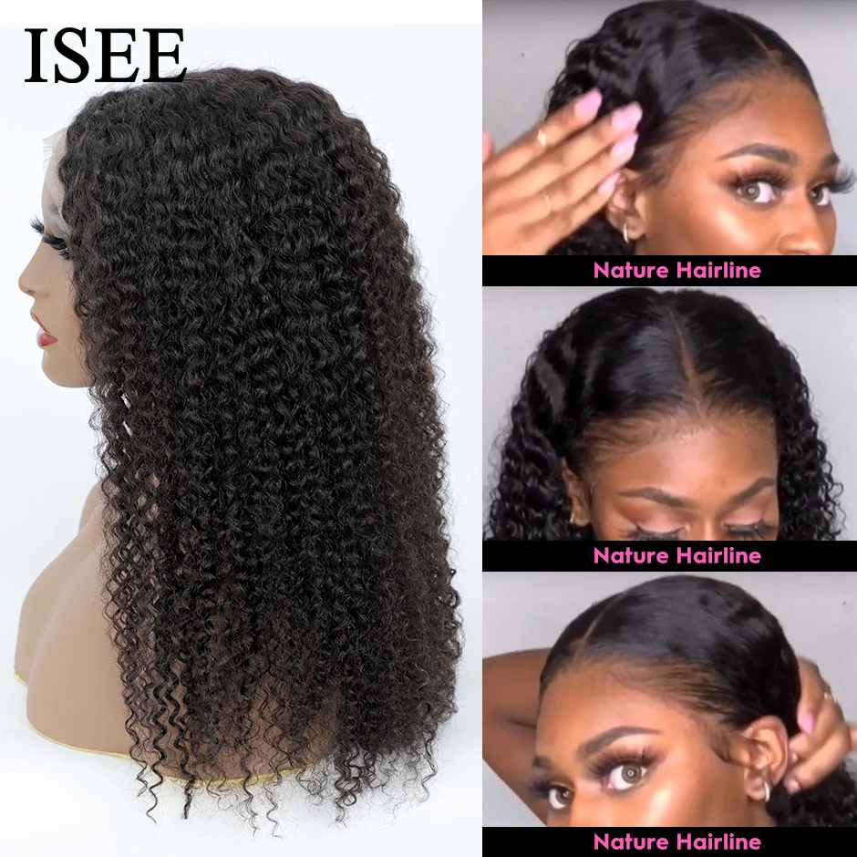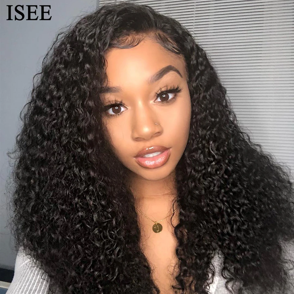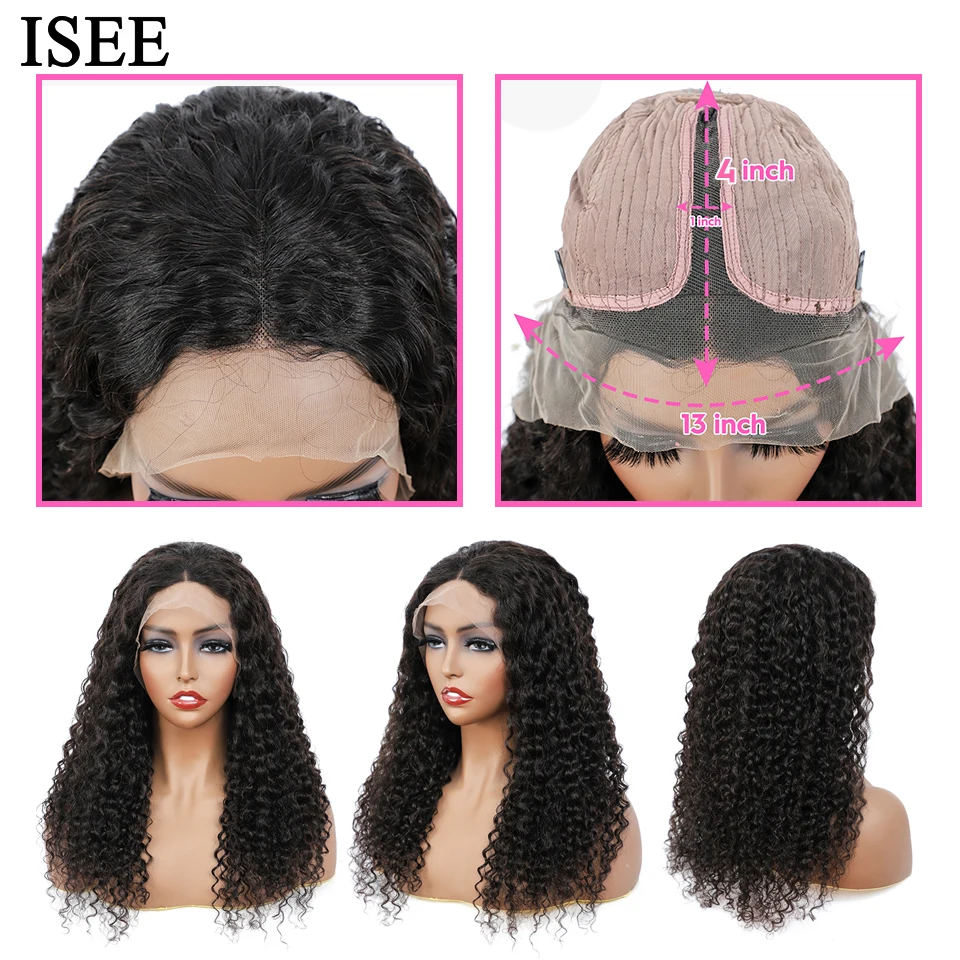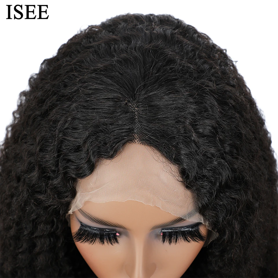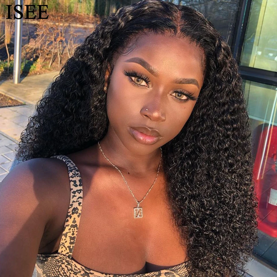 Монгольские кудрявые парики для женщин T часть фронта шнурка парики ISEE Волосы Кудрявые шнурки закрытие парик 13X4X 1 фронта шнурка человеческие волосы парики