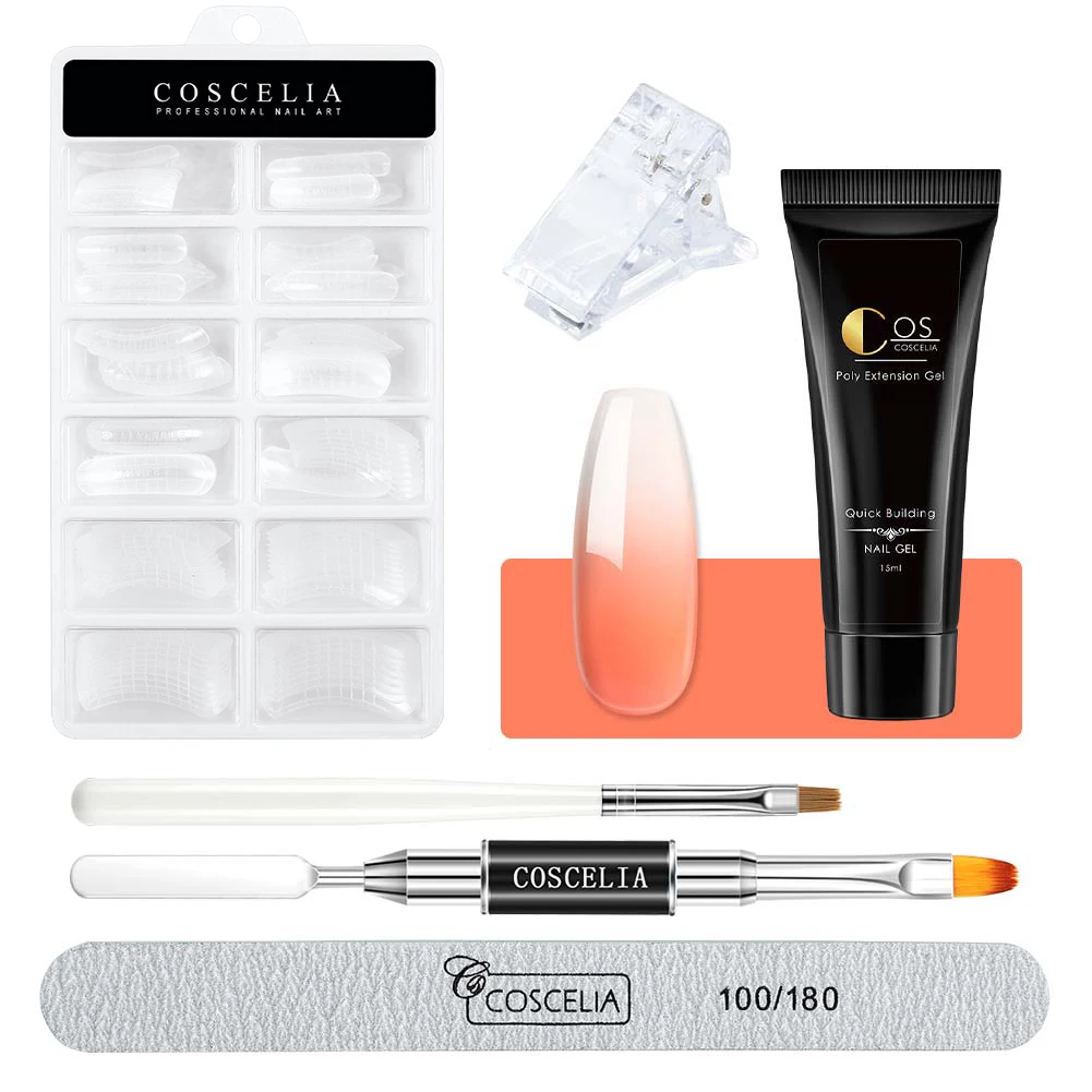 Полимерный косметический гель для наращивания ногтей COSCELIA, набор гель-лаков для ногтей, все для маникюра, набор гелей с противоскользящим раствором, формы для ногтей