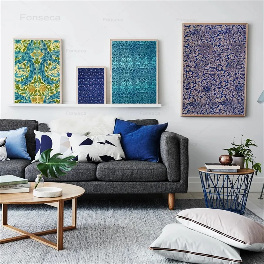 Плакат Вильям Морриса в стиле ретро, Картина на холсте с цветами и ...