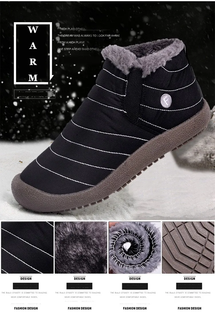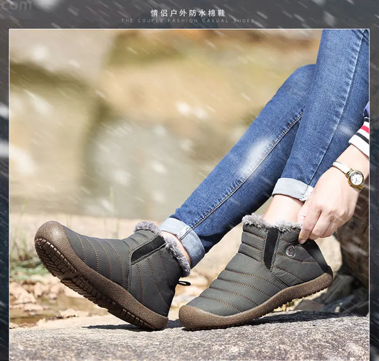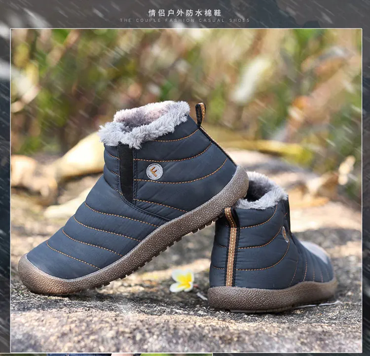 Зимние водонепроницаемые и нескользящие ботинки, мужские большие ботильоны из хлопка, плюшевые теплые ботинки, повседневная обувь из хлопка для мужчин и женщин