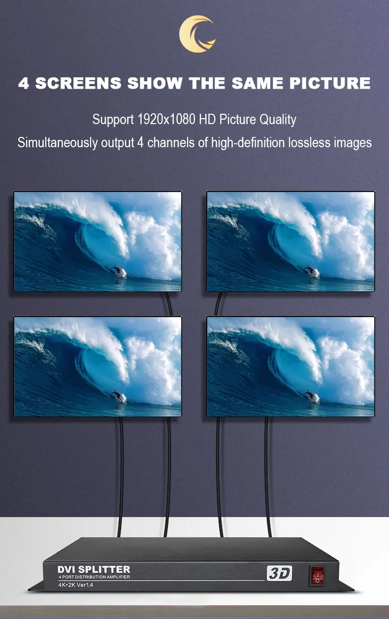 DVI сплиттер 1 в 4 выход DVI видео сплиттер поддержка 3D монитор СВЕТОДИОДНЫЙ TV экран