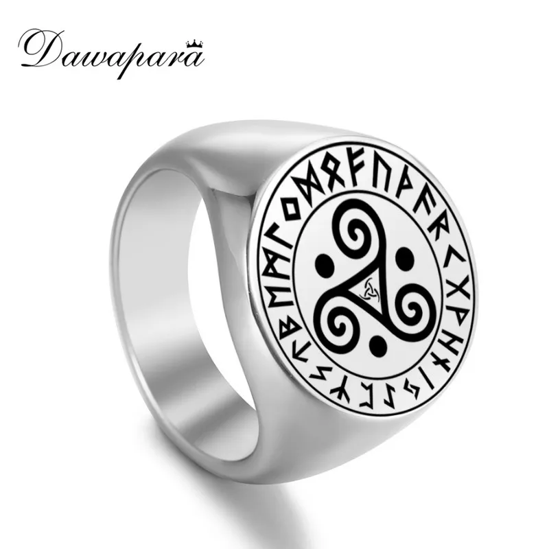 Dawapara Triskele тройной спиральный Triskelion символ в рунах круглый Амулет из нержавеющей стали кольцо оккультная Магия языческий талисман