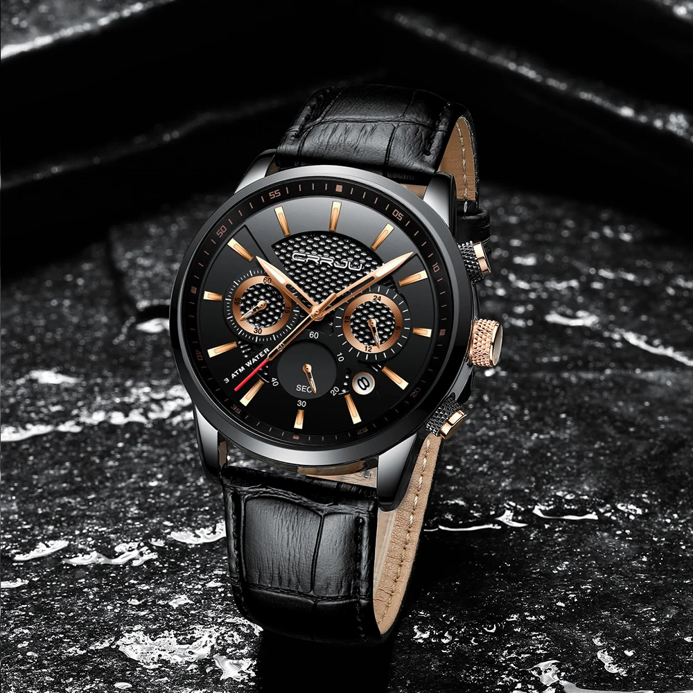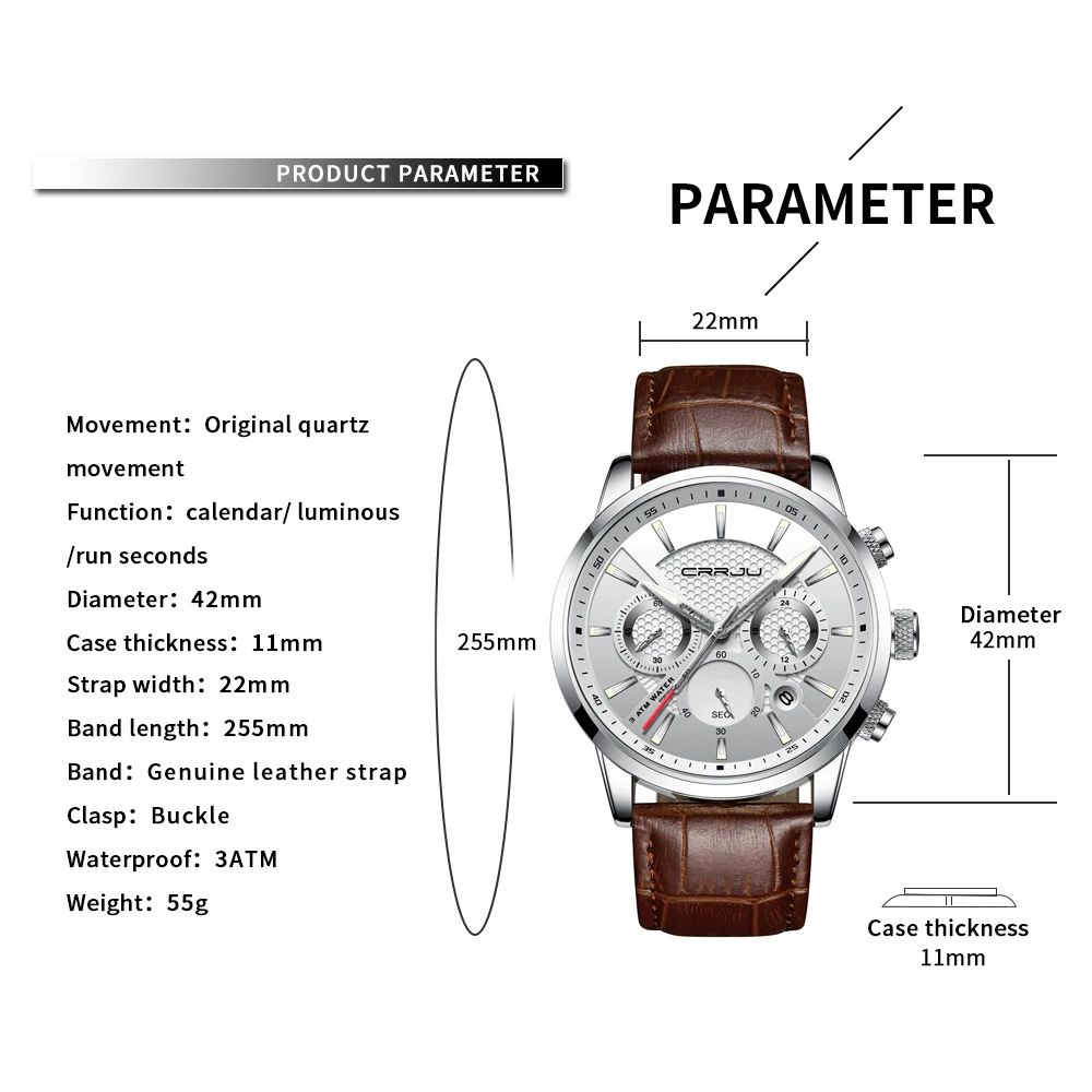 CRRJU модные мужские часы, аналоговые Кварцевые Светящиеся Наручные часы, водонепроницаемые хронограф, спортивные часы с кожаным ремешком, часы Montre Homme