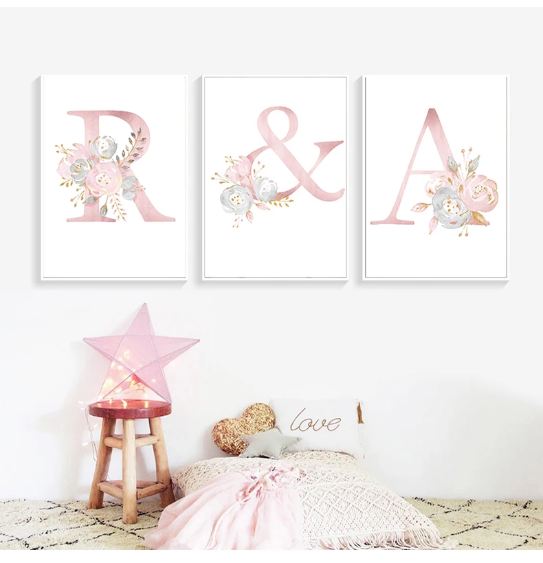 Постеры для детей, с именем девушки на заказ, плакат для детской принтов, розовый цветок, настенная живопись, картины, декор детской комнаты