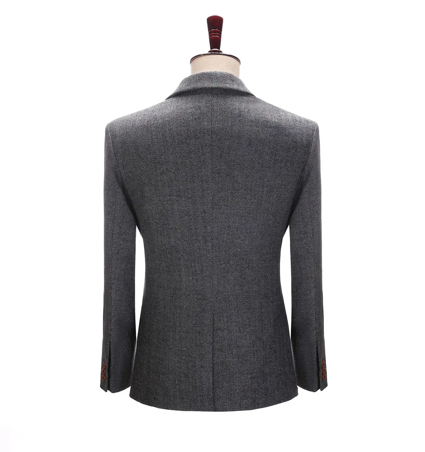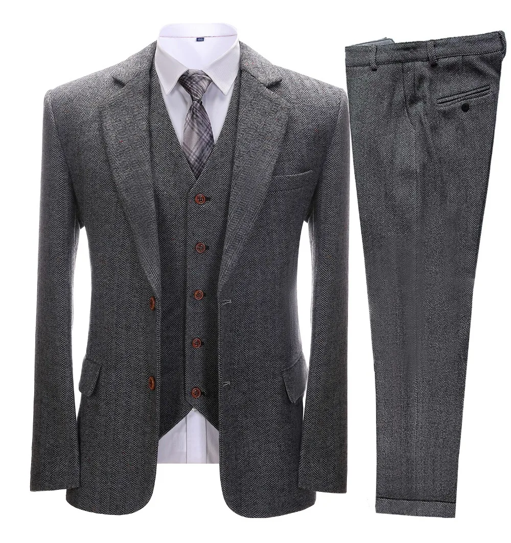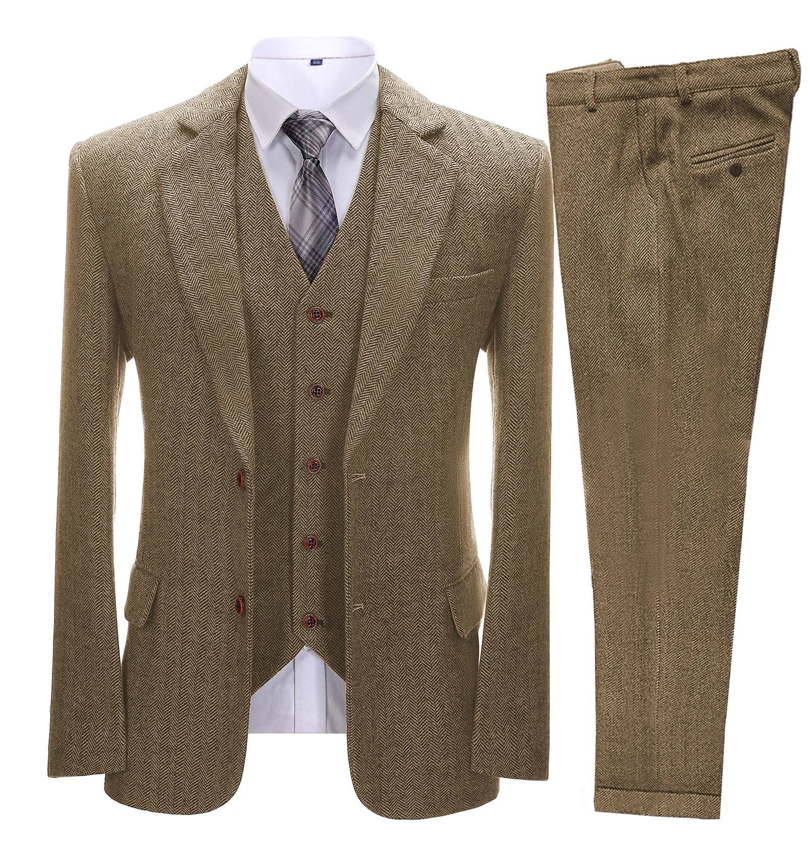 Мужские Винтажные костюмы, коричневые костюмы из 3 предметов, новейший дизайн пальто в елочку, твидовый смокинг, зимние официальные Свадебные костюмы (Блейзер + жилет + брюки)