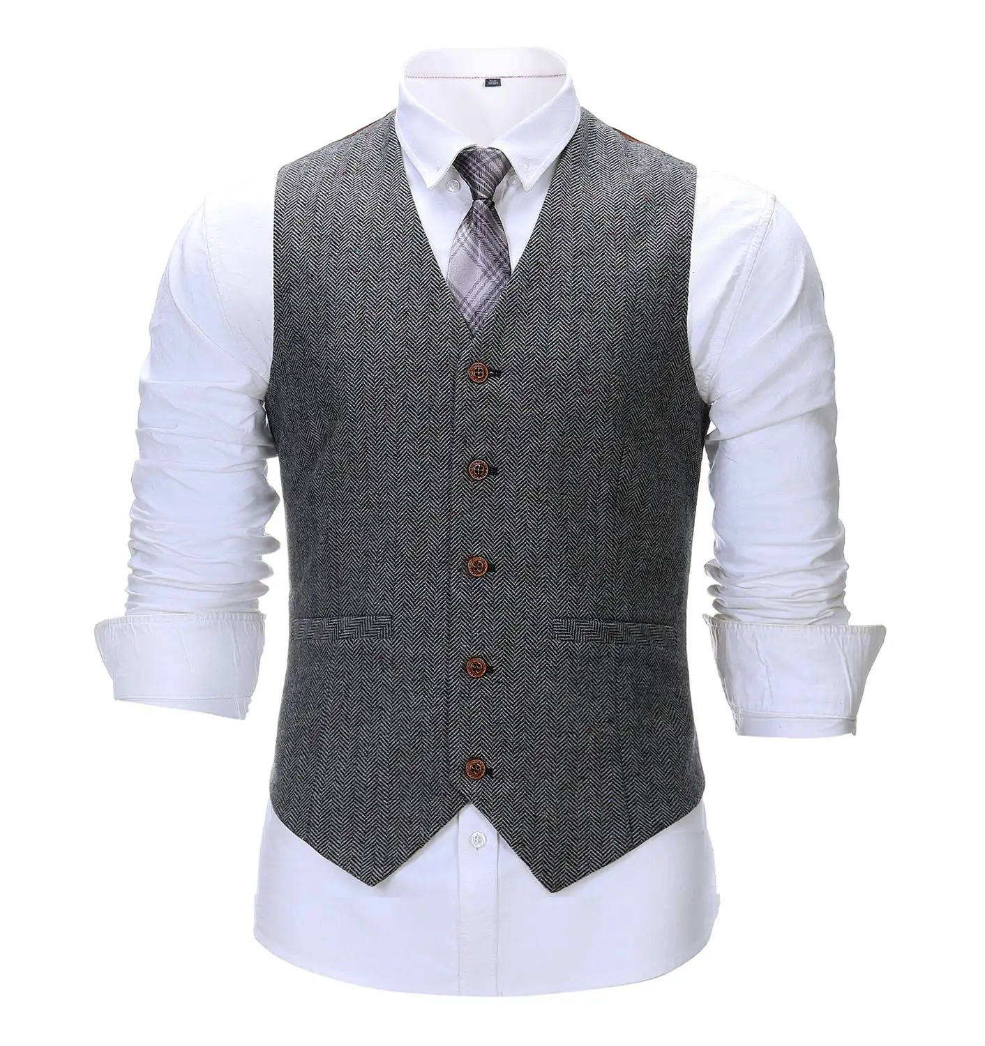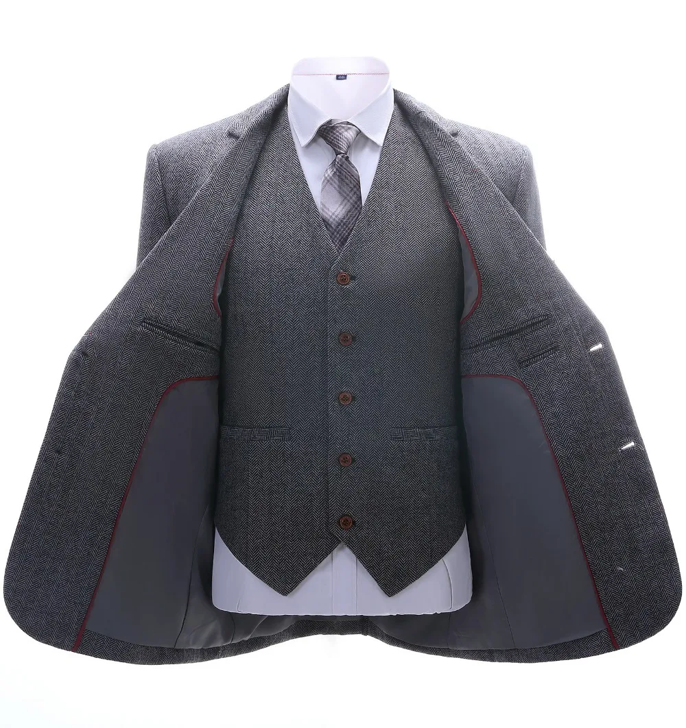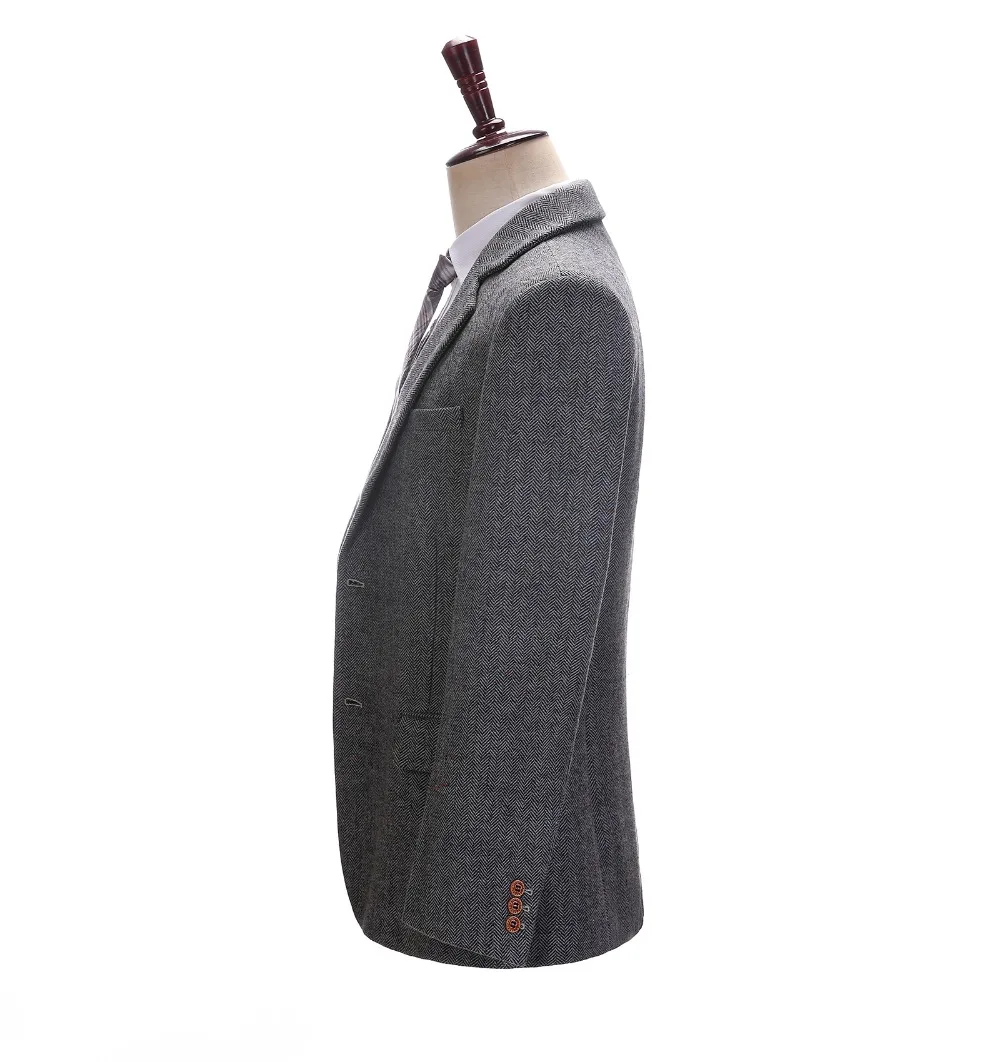 Мужские Винтажные костюмы, коричневые костюмы из 3 предметов, новейший дизайн пальто в елочку, твидовый смокинг, зимние официальные Свадебные костюмы (Блейзер + жилет + брюки)