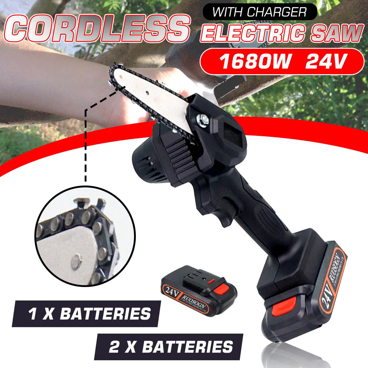 Перезаряжаемая электрическая пила Derosupp 24 В 1680 Вт, бесщеточный двигатель, деревообрабатывающий Электроинструмент с 2 батареями, набор для резьбы по дереву