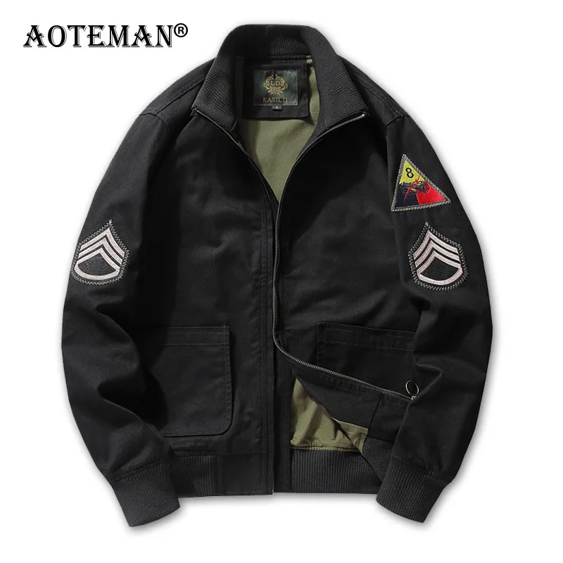 Мужская куртка-пилот в стиле милитари, хлопковое пальто с вышивкой,...