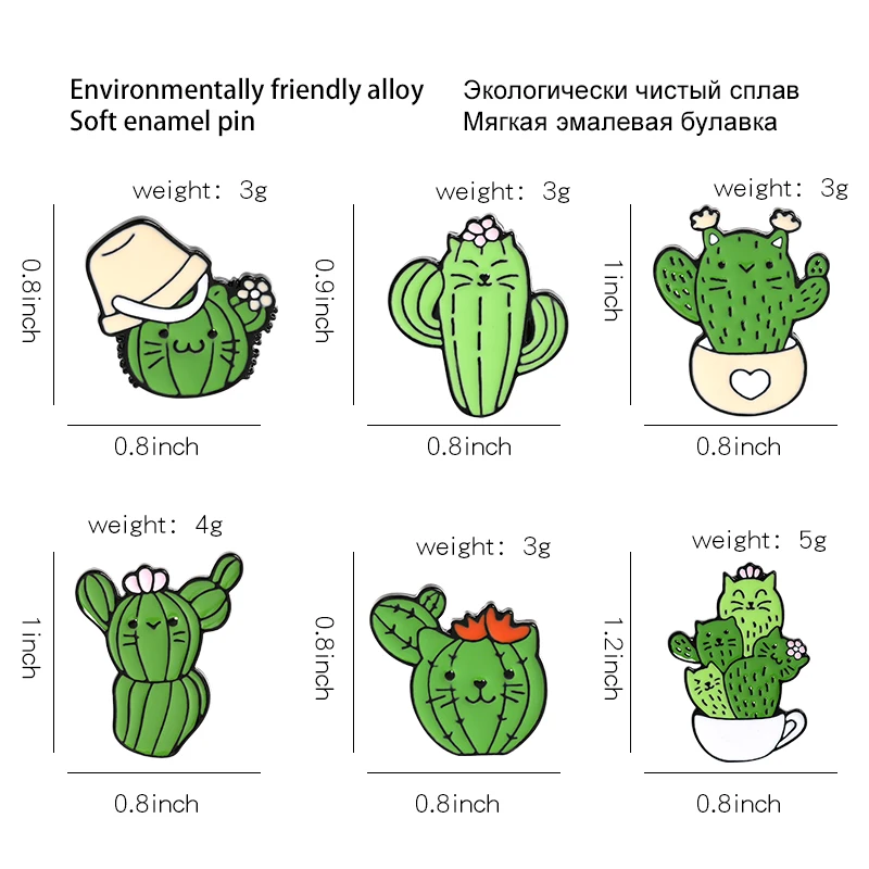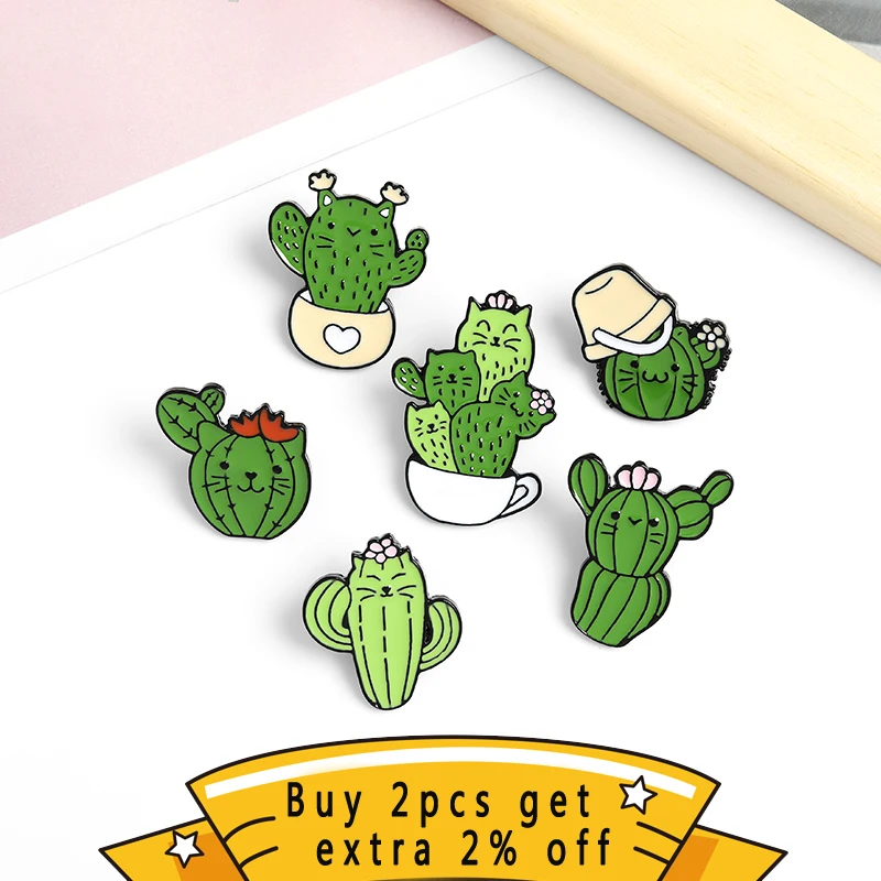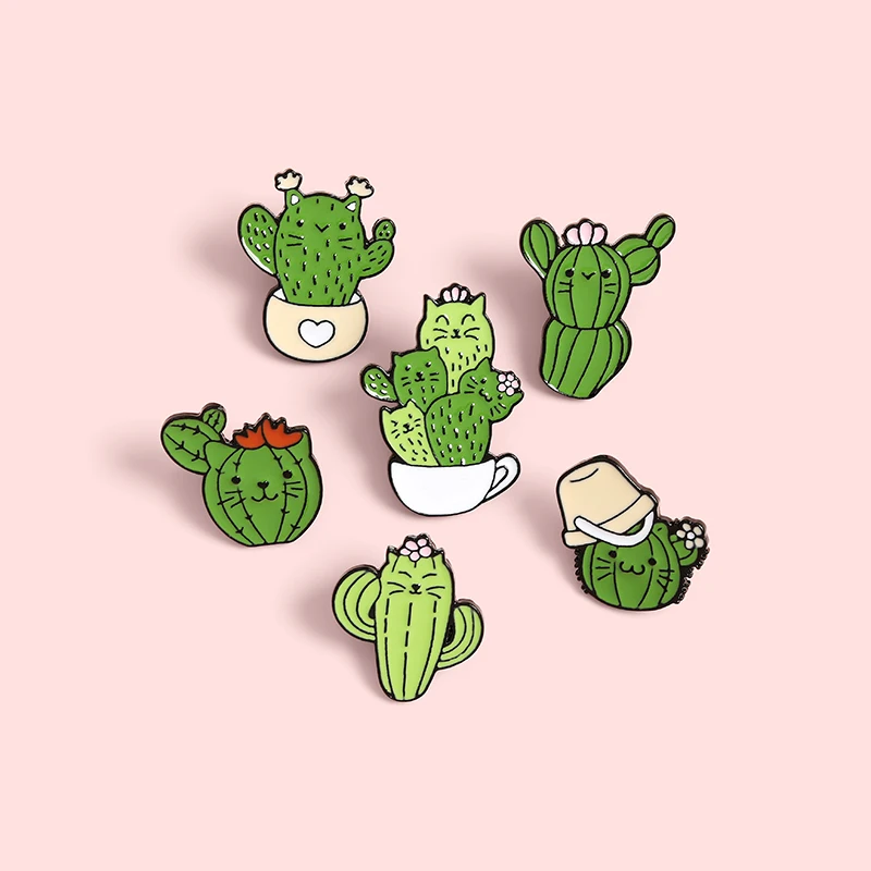 Эмалированные булавки с изображением милого кактуса кота и зеленых ...