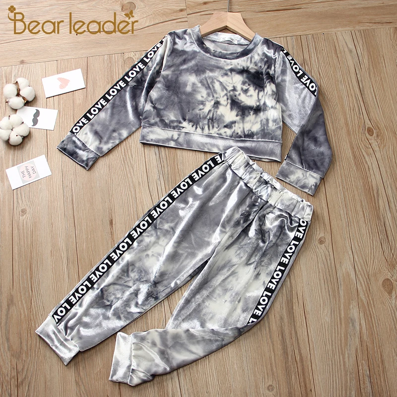 Костюм для мальчиков и девочек Bear Leader, Осенний повседневный костюм с длинным рукавом и надписью, для активного отдыха