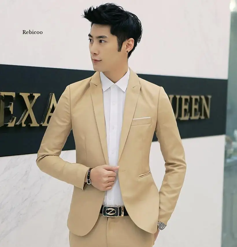 Мужской Блейзер, однотонный приталенный пиджак на одной пуговице, 2021