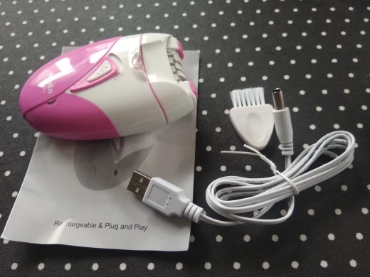 Депилятором довольна: пластик хороший прочный, три скорости, подсветка, силиконо-пластиковая линия для волосков, щёточка для чистки и провод для подсоединения к ЮСБ розетке - это то из-за чего я купила этот аппарат и из-за внутренней батарейки, чтобы не быть зависимой от розетки. Работает нормально, позже, может, дополню обзор. Доставка чуть больше двух недель. Все дошло целым и невредимым в пластиковых пакетах с пузырьками. С продавцом не общалась.