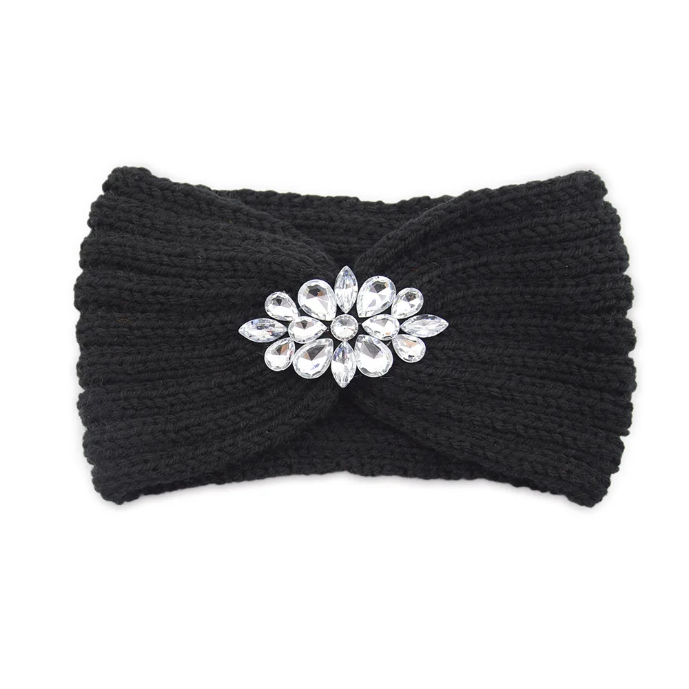 Вязаная повязка для волос с инкрустацией бриллиантами, наушники, вязаный спортивный тренд для мытья лица и йоги, аксессуары для волос, теплая шерстяная повязка на голову