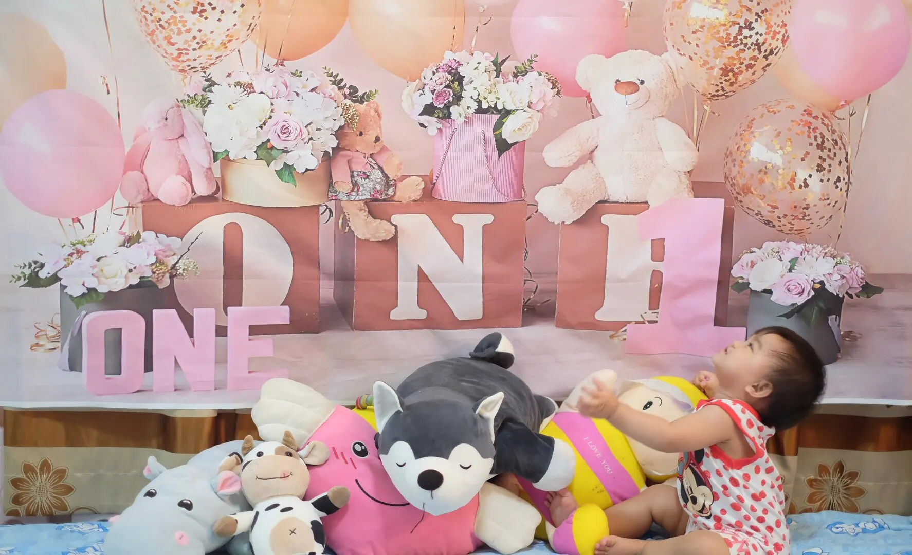 Фон для студийной фотосъемки с изображением торта на 1-й день рождения