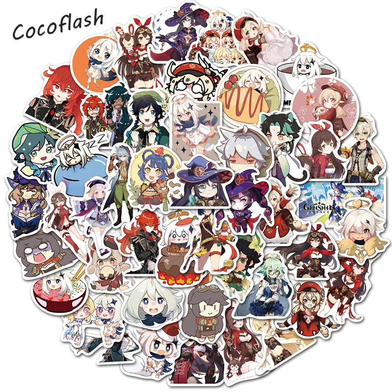 50 шт.компл. Genshin Impact мультяшный открытый мир наклейки из игр...