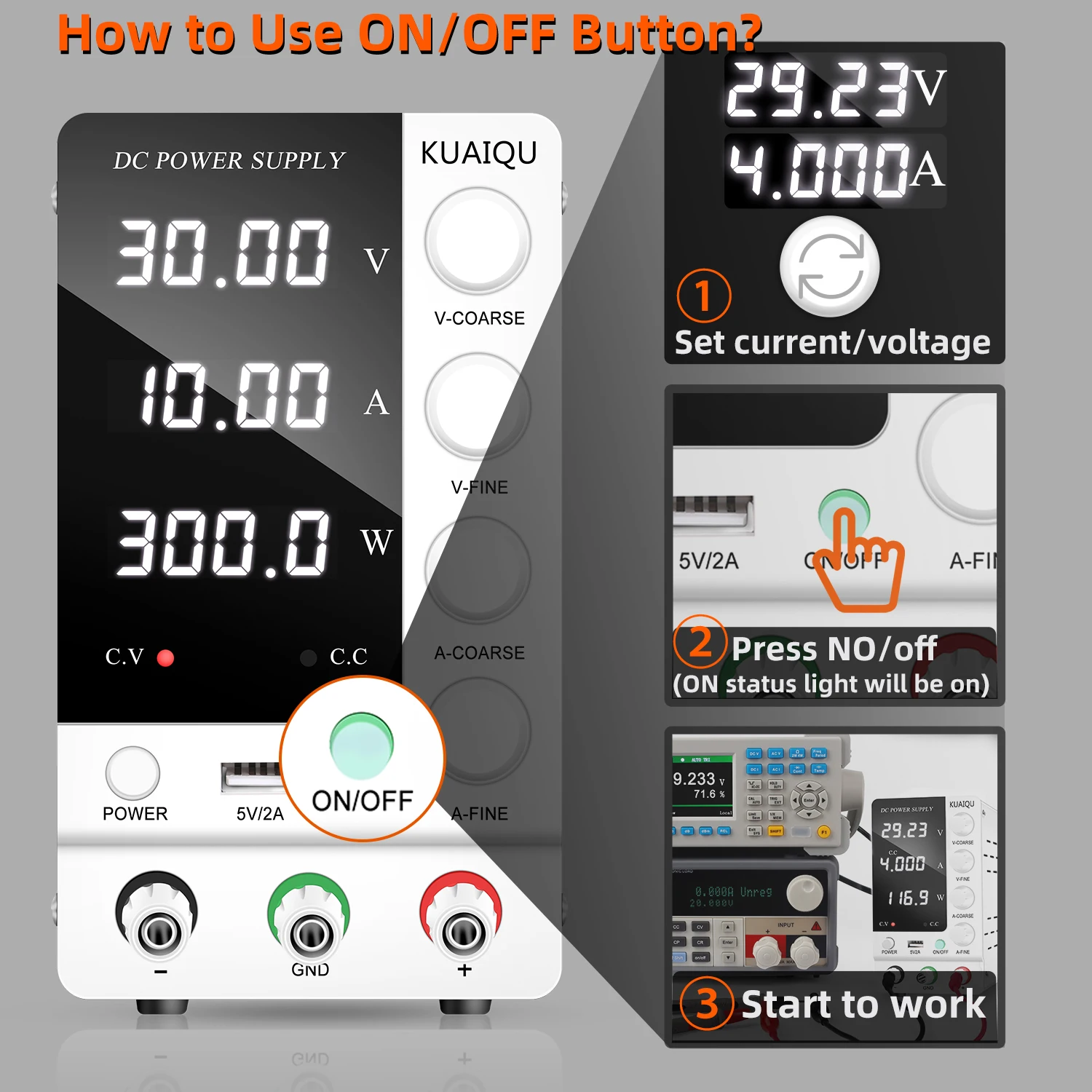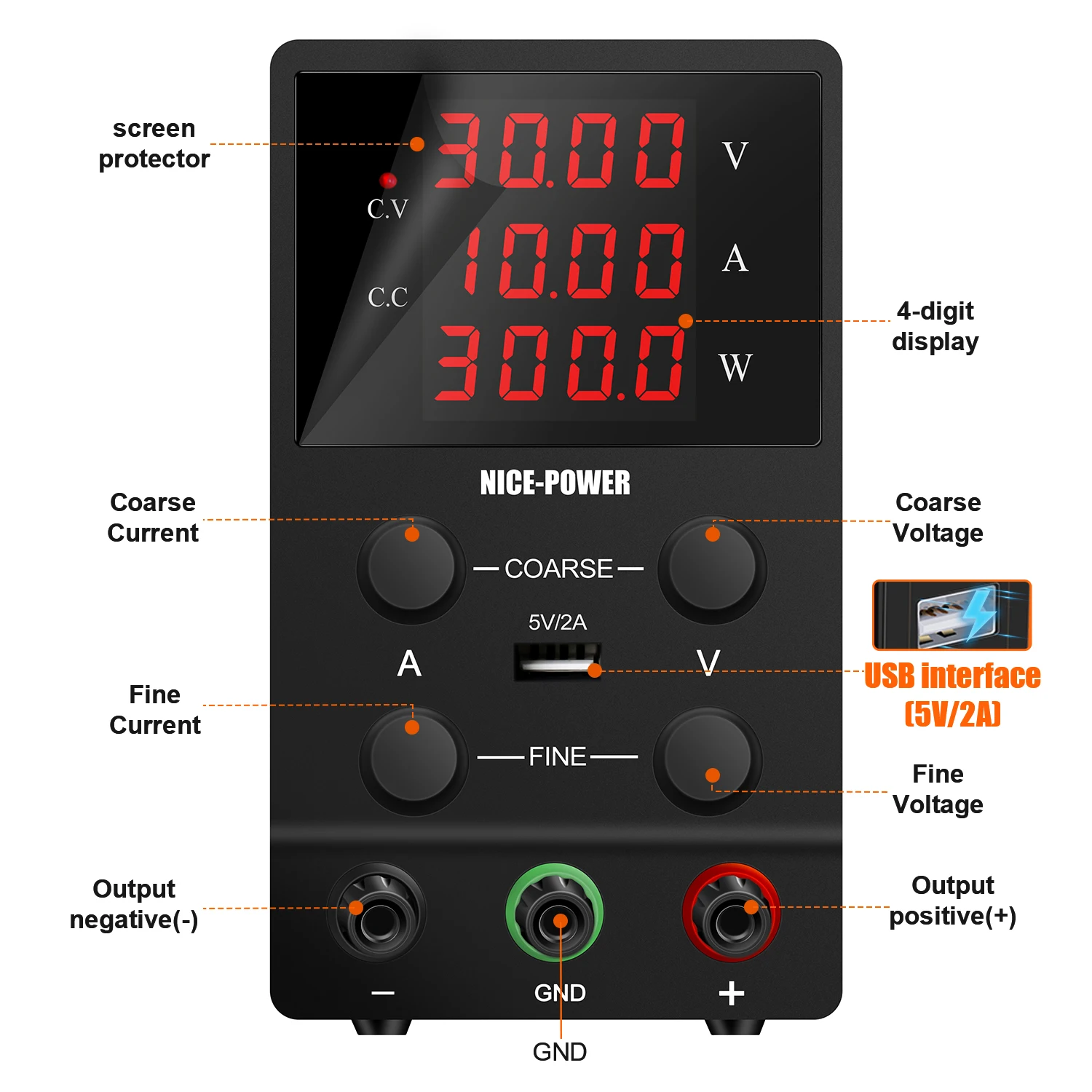 Для предотвращения царапин экран дисплея имеет защитную пленку, которая может не быть очевидна. Если вы обнаружите царапины на экране, вы можете внимательно посмотреть на него, и вы обнаружите, что на экране есть защитная пленка.Не выполняет первичную функцию-не выключается. Поскольку наш источник питания использует лучшую емкость, после отключения питания появится небольшой эффект отображения задержки. Это нормально, и это займет несколько секунд, чтобы выключить экран. Вентилятор источника питания будет автоматически включаться, когда температура достигает 50 ℃. Мы имеем предельную защиту тока, тепловую защиту, защиту от перегрузки напряжения, защиту от короткого замыкания.Если вы не можете настроить ток, это может быть потому, что у вас нет доступа к электронной нагрузке. Вы можете включить электронную нагрузку или создать короткое соединение, а затем отрегулировать его. Вы также можете связаться с нами. Этот источник питания постоянного тока для ремонта телефонов, лабораторного использования, заряда батареи, покрытия и т. д.Он имеет полную функцию защиты, двойной потенциометр более точной регулировки.Если вы обнаружите, что источник питания не работает или экран не отображается после получения товара, пожалуйста, немедленно свяжитесь с нами, и если у вас есть что-то, что вы не понимаете в процессе использования, пожалуйста, свяжитесь с нами, и мы ответим вам.Введение:Серия импульсных источников питания для измерительного прибора исключила неудобство большого объема и тяжелого веса традиционного источника питания. Четыре кнопки регулировки, выходное напряжение и ток соответственно управляются двумя переменными резисторами с грубой и тонкой регулировкой для более удобной и точной регулировки.1. Имеет полную функцию защиты. Защита от перегрева, защита от перегрузки, защита от короткого замыкания.2. Малый размер, низкая пульсация, светильник вес и высокая плотность мощности, высокая эффективность.3. Стабилизация напряжения, ограничение тока, простая работа.4. Постоянное давление и постоянный ток автоматически переключаются.5. Три светодиодный отображения напряжения, тока и мощности, высокая точность.6. Контролируемый температурой вентилятор рассеивания тепла, низкий уровень шума, длительный срок службы.7. Четыре потенциометра более точная регулировка.8. Двойной вход напряжения и удобный выбор.9. Выходное напряжение колеблется от 0 до 30 В/60 в/120 В номинальное напряжение с непрерывной регулировкой.10. Выходной ток колеблется от 0 до 10A/5A/3A Номинальный ток с непрерывной регулировкой.Больше параметровВходное напряжение: 110 В переменного тока/220 В 50/60 ГцВыходное напряжение: 0 ~ 30 В/60 в/120 вВыходной ток: 0 ~ 10A /5A/3AРазрешение напряжения: 100 мВТекущее Разрешение: 10 мАРегулирование напряжения: линейное регулирование <5мв. Регулировка нагрузки <5мв.Время восстановления <500us(50% изменение нагрузки, минимальная нагрузка 0.5A)Пульсация и шум <5 м Vrms, 100 м Vp-pТемпературный коэффициент <100p pm/C.Текущее регулирование линии <3 мА. Регулирование нагрузки <3 мА.Измерительный приборТочность отображения напряжения: +-(0.5% rdg + 2 знака).Точность отображения тока: +-(0.5% rdg + 2 знака).Рабочая температура и влажность: 0 ~ 40 C, RH<80%.Температура хранения и влажность: -10 ~ 70 C, RH<70%.Посылка размеры циферблата: 12,48x8,23x5,08 дюймовВаши посылка включают в себя1 * Источник питания пост