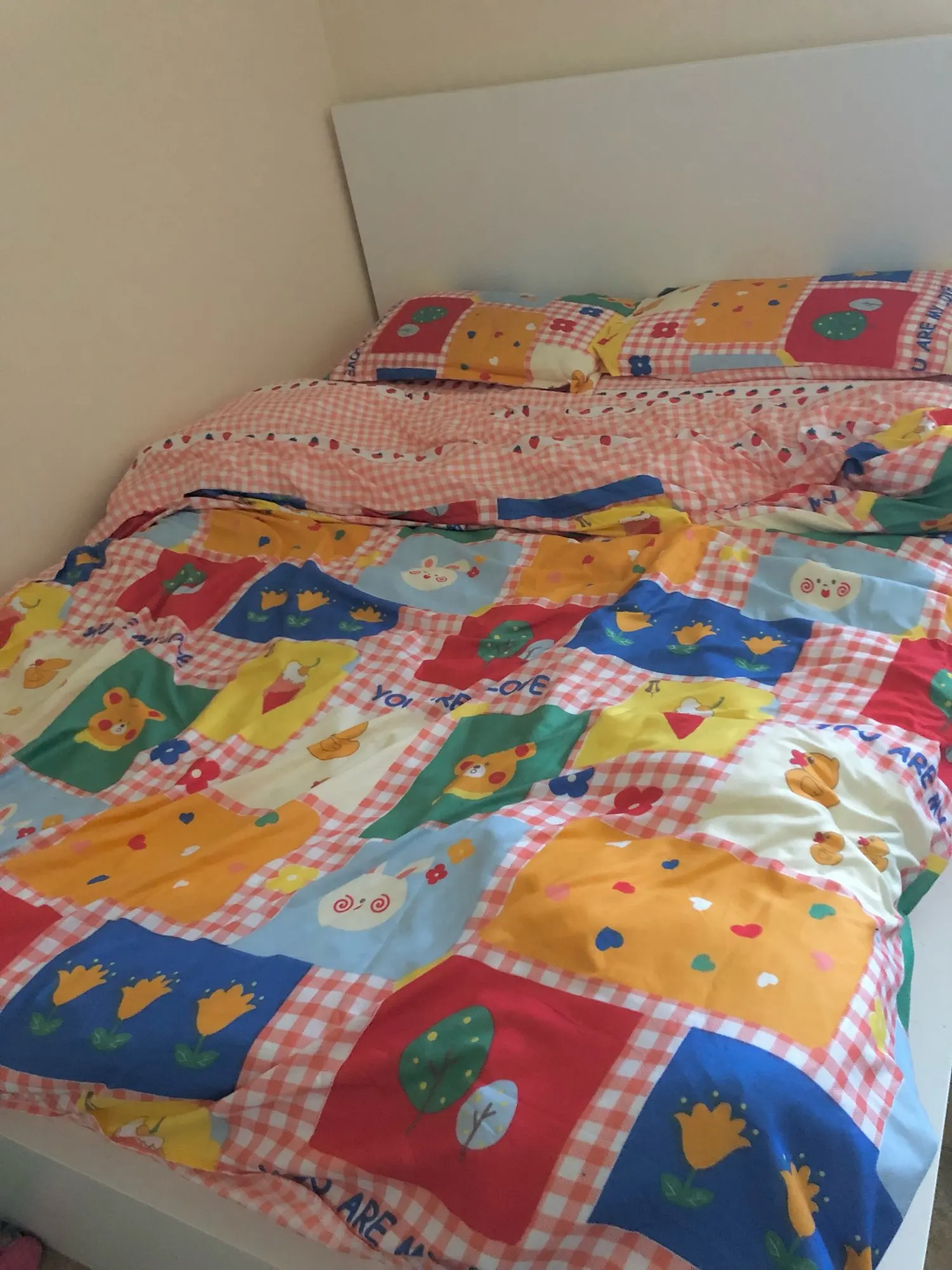 Мило! Простыни тонкие, а не одеяло. Листы чувствуют себя дешевыми, а принт немного выключен, но я хочу сказать, что это было 30 долларов, и они милые, не так плохо. Возможно, вы получите на размер больше, чтобы добавить комфортную подкладку. Я рекомендую, если вы не прикольны!