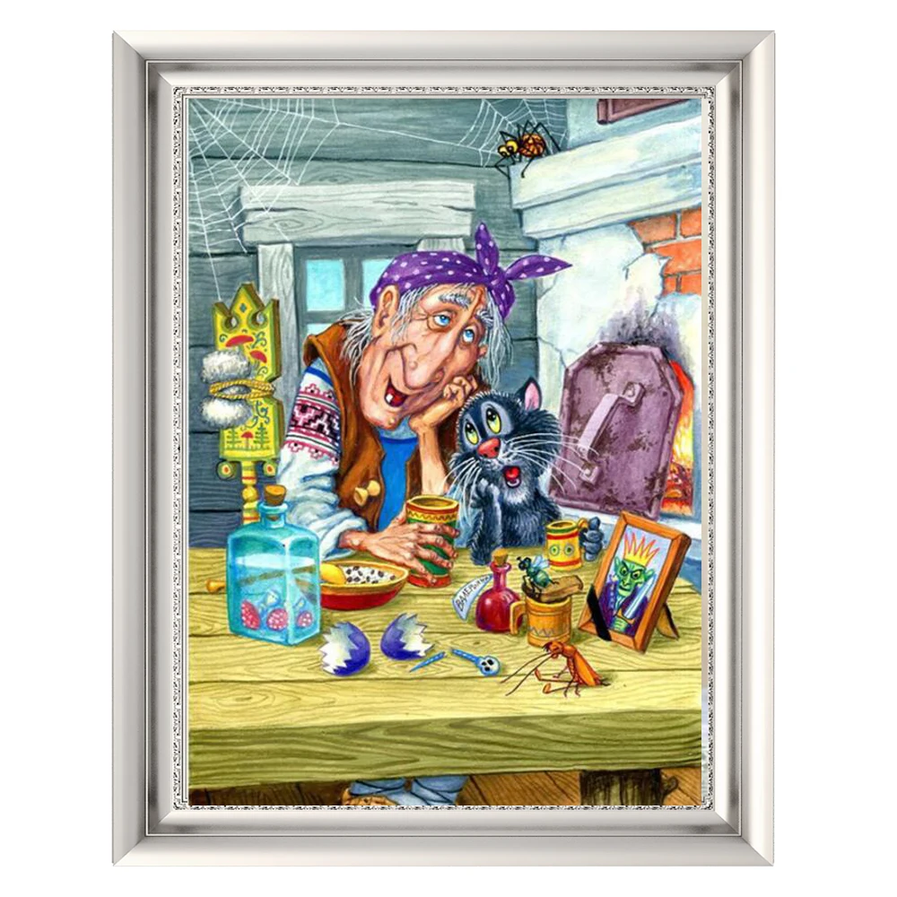 Рукоделие ручной работы, алмазная вышивка Ведьма и Кот стразы, вышивка крестиком, мозаика, алмазная живопись, искусство, украшение для дома