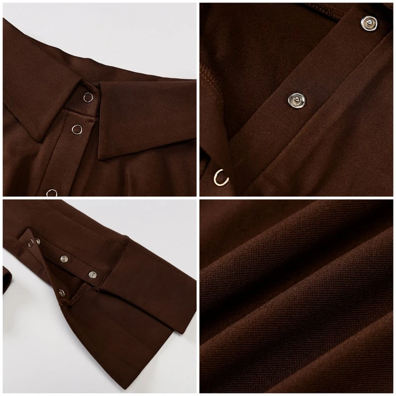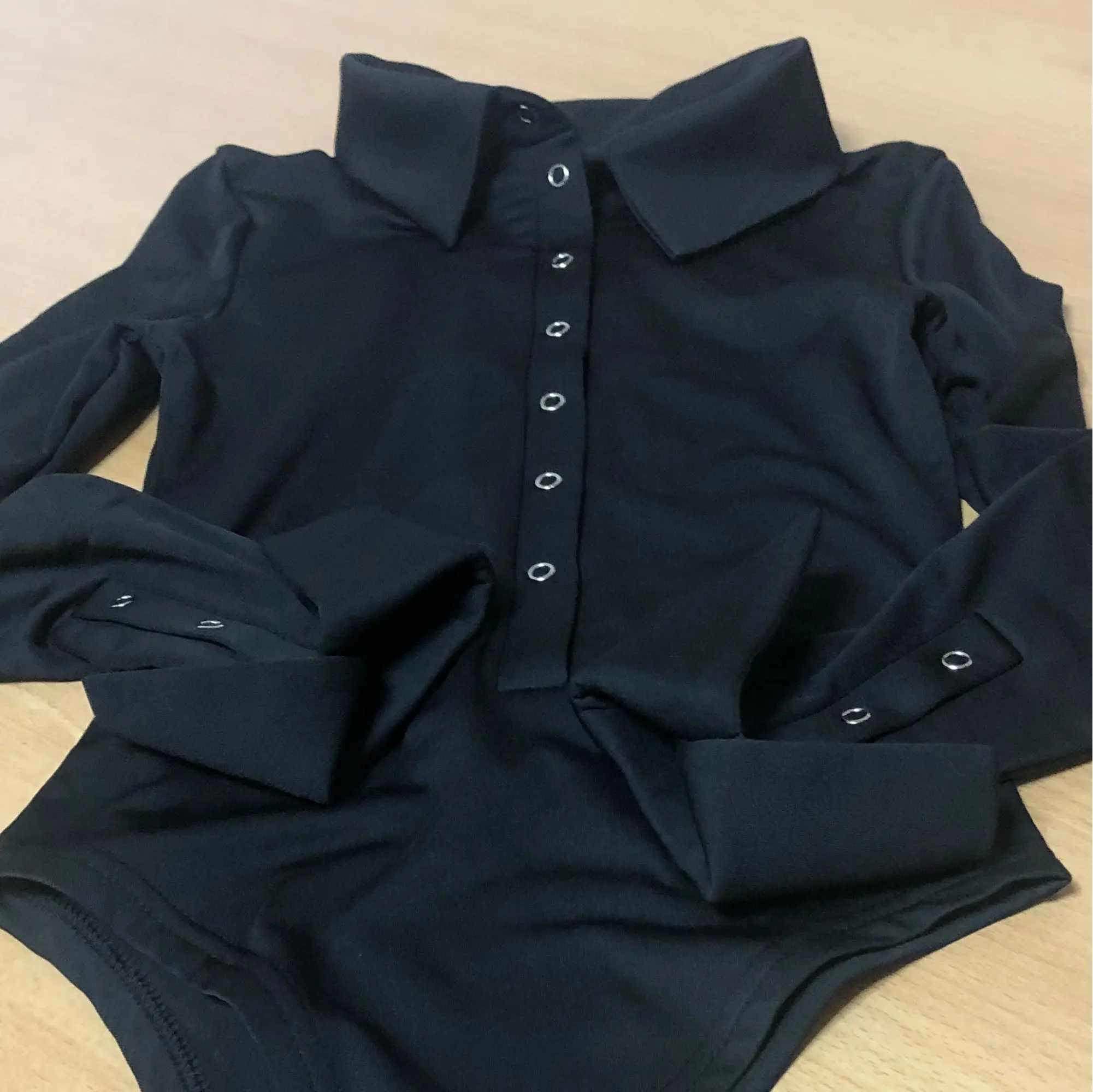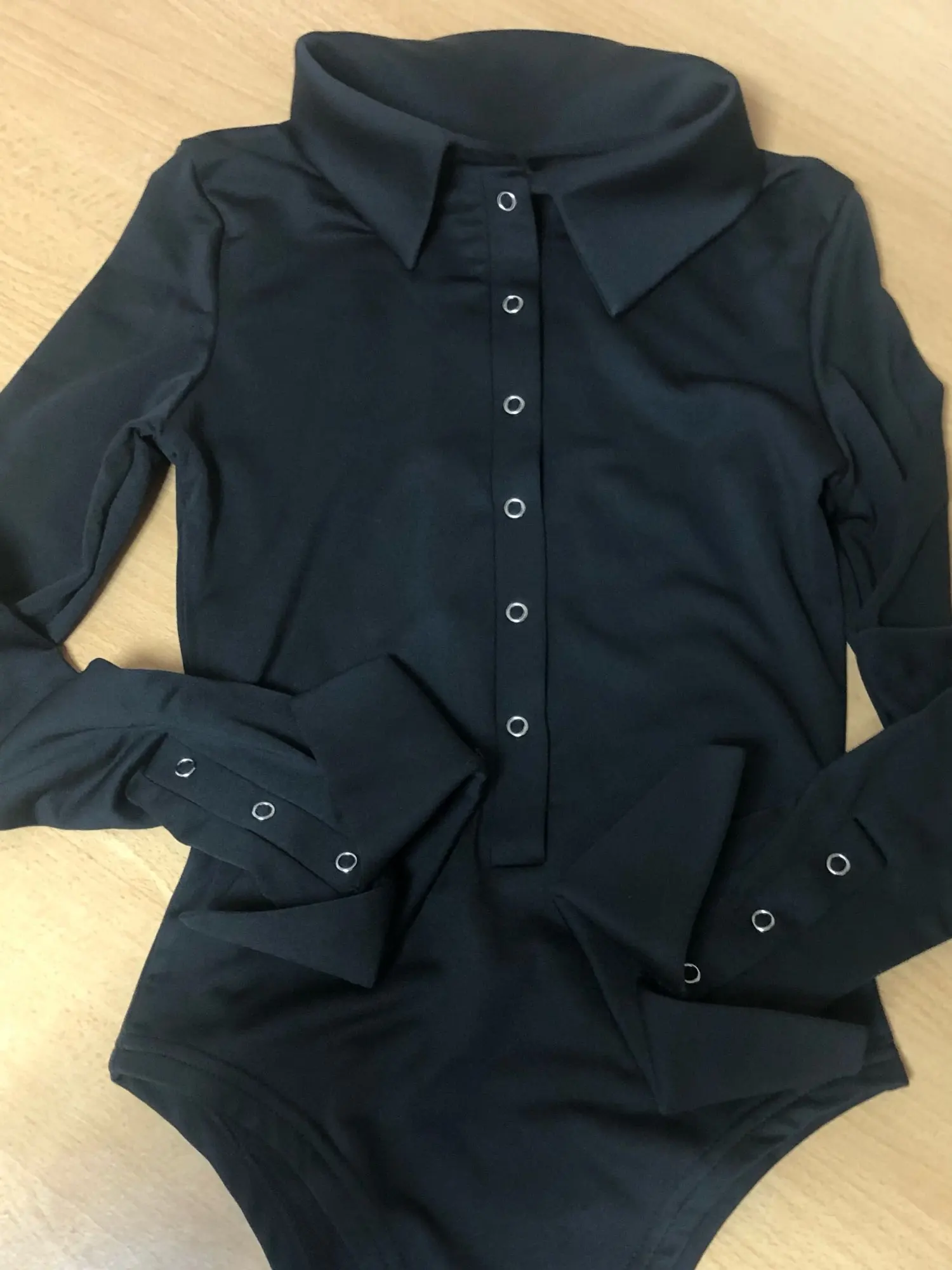 Женское боди с отложным воротником Julissa Mo, черное, на пуговицах, с длинным рукавом