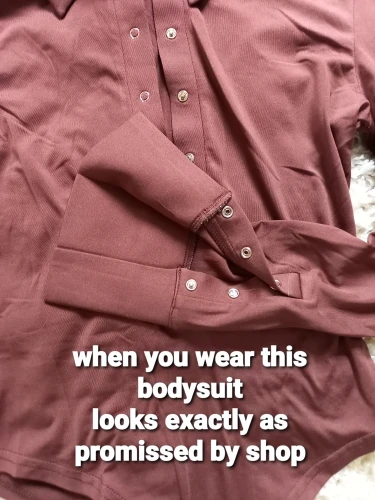 Красивый стильный боди, все как на картинках продавца, и сел отлично, тут в отзывах покупальница не потрудилась надеть его как положено, застегнув кнопки и уже говорит, что мал, у меня на рост 173 даже размер S сел отлично, туго, да, можно было бы и М-ку взять, но меня все устраивает, поэтому могу сказать, что размеры нормальные европейские. Ткань синтетика с эффектом термо, очень приятная, но наверняка склонна к скатыванию, в целом за свою цену нормальная вещь