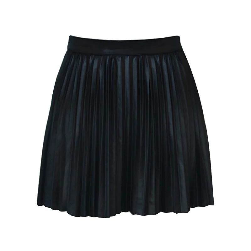 Женская короткая юбка из искусственной кожи на осень и зиму, черная Уличная Сексуальная мини-юбка А-силуэта с высокой талией, кожаная женская плиссированная юбка