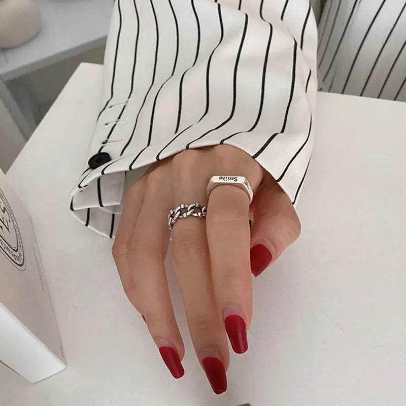 XIYANIKE серебряный цвет Корейская цепь улыбка письмо указательный палец кольцо женское Ретро открытие ручной работы подарок ювелирные изделия аксессуары