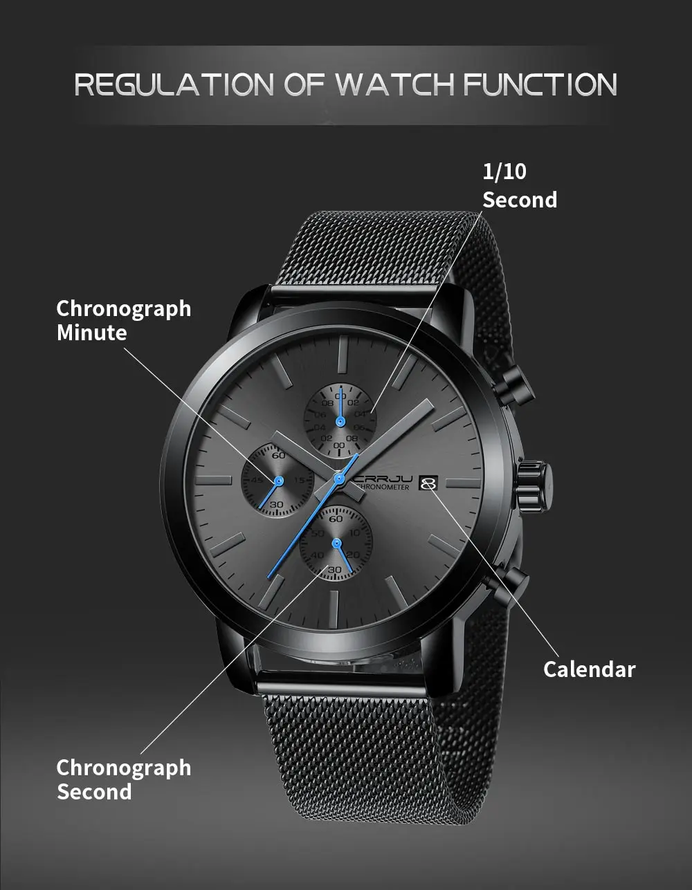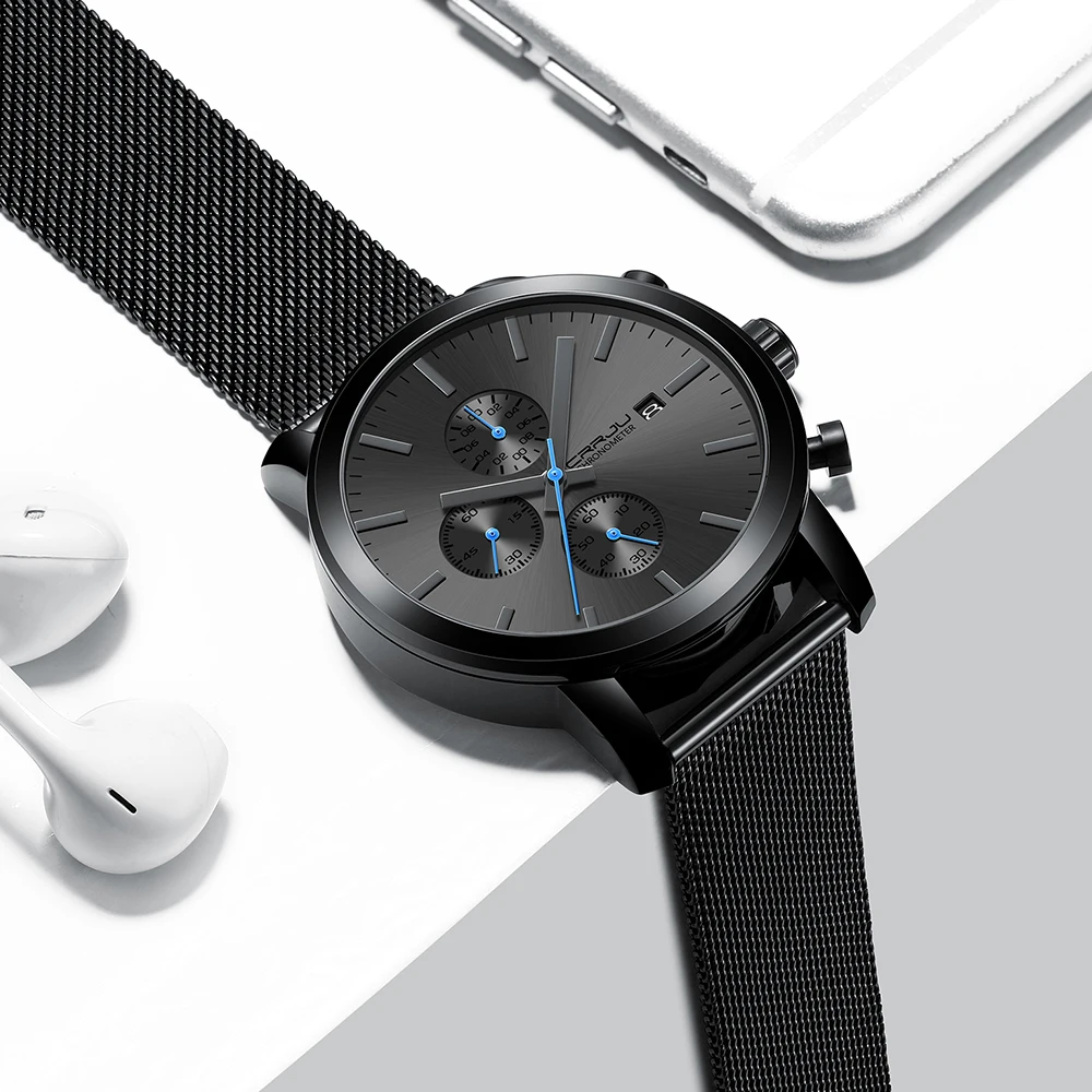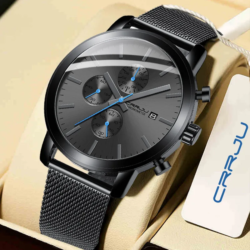 Часы мужские CRRJU, из нержавеющей стали, водонепроницаемые, с дато...