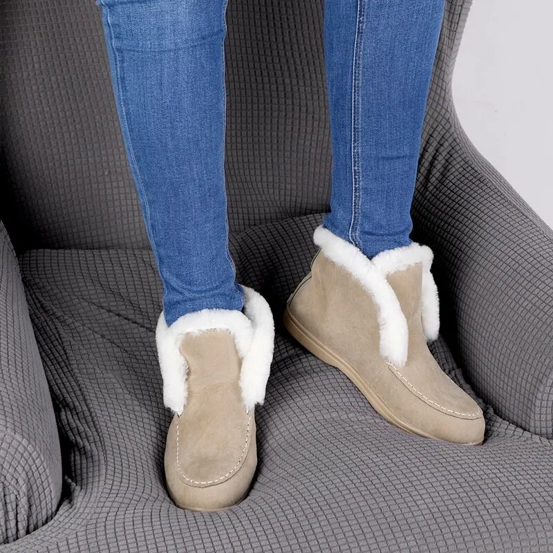 Женские ботинки, зимние теплые лоферы, женская короткая плюшевая обувь на плоской подошве, женская повседневная обувь без шнуровки на платформе, комфортная Мягкая Горячая пушистая мокасина