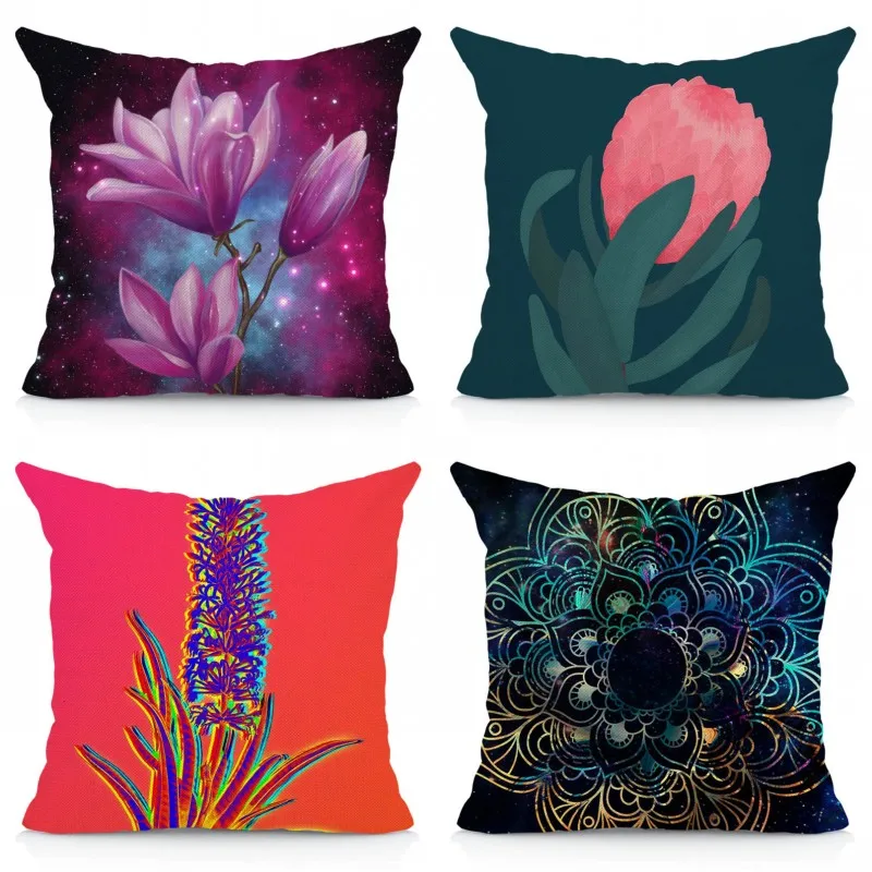 С цветочным рисунком, с рисунком в виде картины наволочки льняная Подушка Чехол дома диван квадратная Декоративная Наволочка на подушку для 45X45cm BZT008