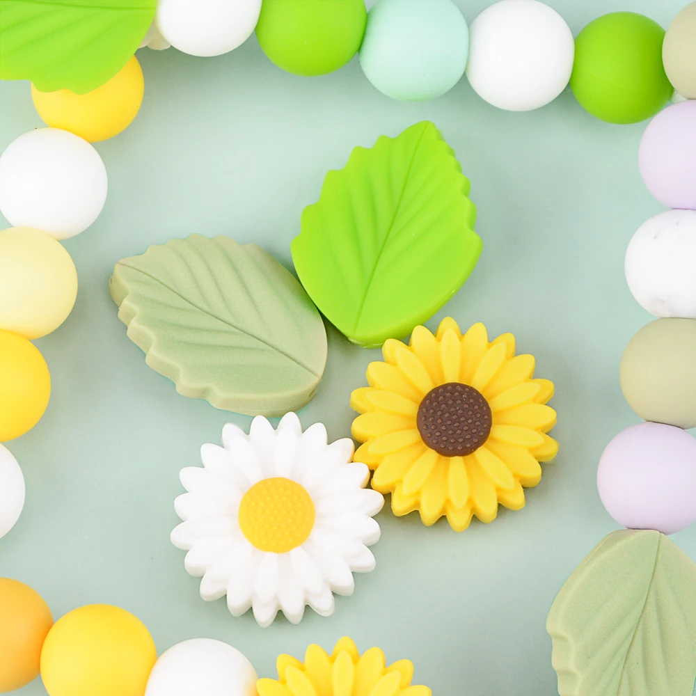 LOFCA 10 шт. Милые силиконовые бусины в форме листьев Прорезыватель для зубов пищевого класса детские животные не содержит Бисфенол А детская игрушка для прорезывания зубов цепочка для соски аксессуары