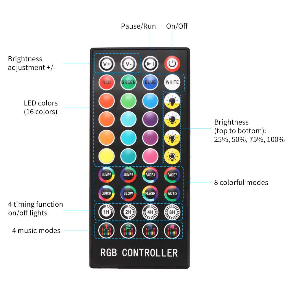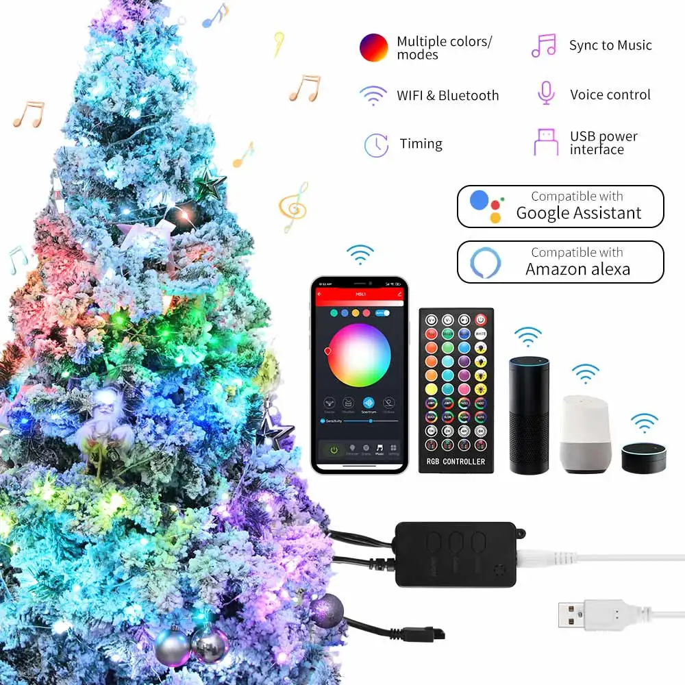 WIFI 2,4g и управление BluetoothСказочный светильник разработан с помощью кнопочного переключателя, который может быть подключен к вашему интеллектуальному приложению для телефона Tuya с помощью технологии Wi-Fi 2,4g и Bluetooth. Двойные способы обеспечивают стабильное подключение. Со встроенным микрофоном, светильник поддерживает alexa и google голосовой помощник, удобно управлять светильник на дальнем расстоянии.Инфракрасный пульт дистанционного управления и регулируемый светильникПрикрепленный с пультом дистанционного управления 40 клавиш, светильник удобно управляется контроллером. Есть 16 светильник цвета и 12 виды светильник режимов для вас, чтобы выбрать, 4 уровня яркости может быть предоставлена, четыре таймер режимов (1 h, 2 h, 4 h, 8н) для удовлетворения ваших потребностей в использовании. Кроме того, трехклавишный переключатель удобен для пользователя, чтобы напрямую настроить светильник.Четыре режима воспроизведения музыкиРазработанный со встроенным микрофоном, светильник может изменить свой светильник цвет в соответствии с музыкой, с четырьмя музыка светильник режимы и регулируемый звуковой датчик уровней чувствительности для вас на выбор, хорошо строит романтическую атмосферу.Usb-интерфейс питанияСказочный светильник разработан с интерфейсом USB, удобным для пользователей, чтобы найти подходящий источник питания, такой как внешний аккумулятор, разъем USB и так далее. Кабель питания длиной 103 см/3,37 фута удобен для ежедневного использования.Область примененияСказочный светильник гирлянды с большим размером светильник бусины приносит еще светильник эффект, широко подходит для вечерние, для спальни, для дома, сад, патио, балкон, стены, окна и так далее. Светильник можно управлять всеми цифровыми устройствами, которые поддерживают приложение Tuya.Спецификация:Тип: наружный струнный светильникКоличество: 1 шт.Материал: металл + пластик + электрический компонентЦвет: черныйСветильник: RGB 15 цветов + белыйНазвание приложения: TuyaСветильник с бусинами Количество: 50 шт. светильник с бусинамиСветильник режим: 12 разных стилях праздничные платьяРежим настройки таймера: 1h, 2h, 4h, 8hРежим музыки: четыре режимаУровень яркости: четыре уровняУровень чувствительности голосового датчика: РегулируемыйКнопка паузы: ПоддержкаДлина кабеля USB: 103 смСветильник Длина: 5 м/16.4ftВес нетто: 464,5 г/16,38 унцийПосылка:1 * светильник1 * USB кабель1 * пульт дистанционного управления1 * коробка для посылка